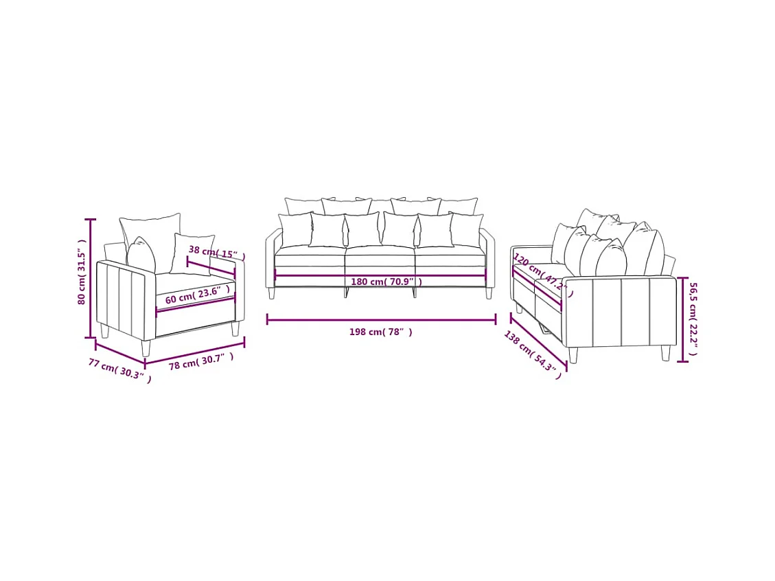 Ensemble de canapés 3 pièces avec coussins Noir Velours