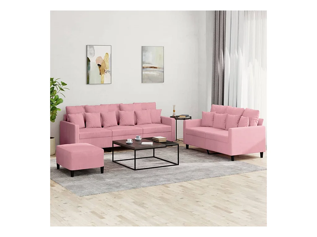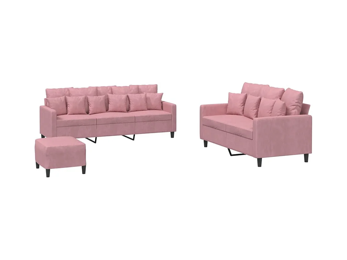 Ensemble de canapés 3 pièces avec coussins Rose Velours