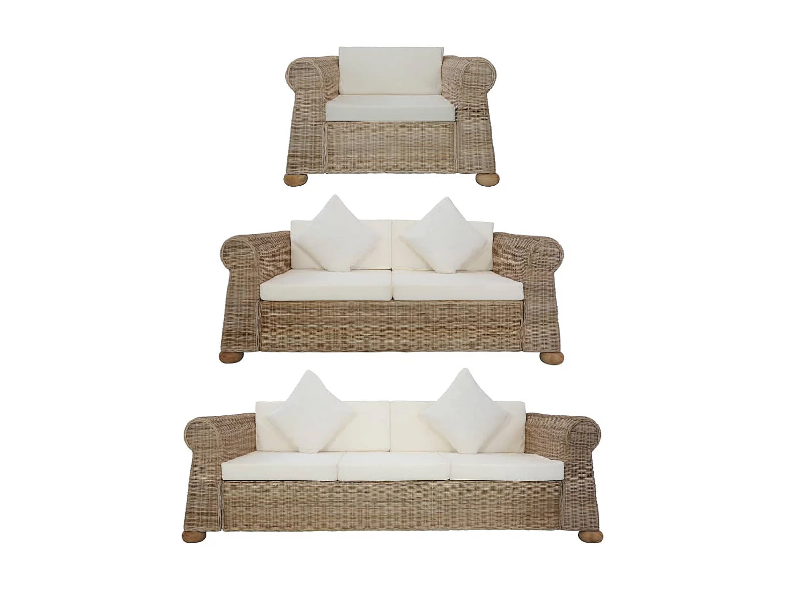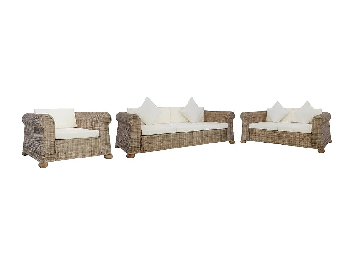 Ensemble de canapés 3 pièces avec coussins Rotin naturel