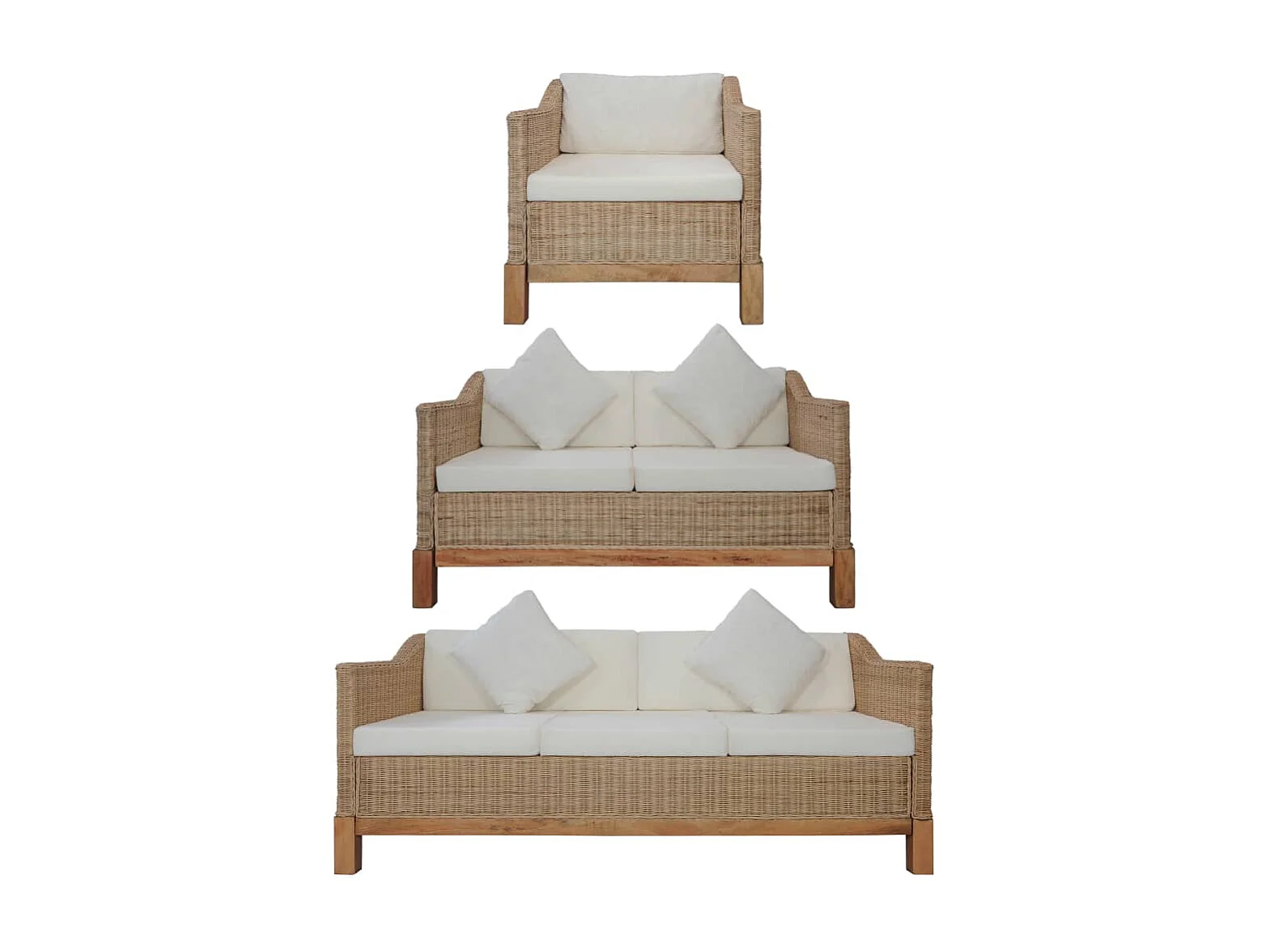 Ensemble de canapés 3 pièces avec coussins Rotin naturel
