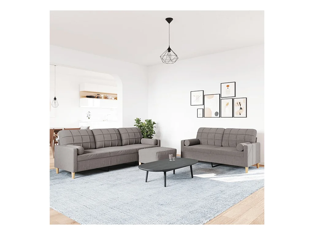 Ensemble de canapés 3 pièces repose-pied et coussins décoratifs