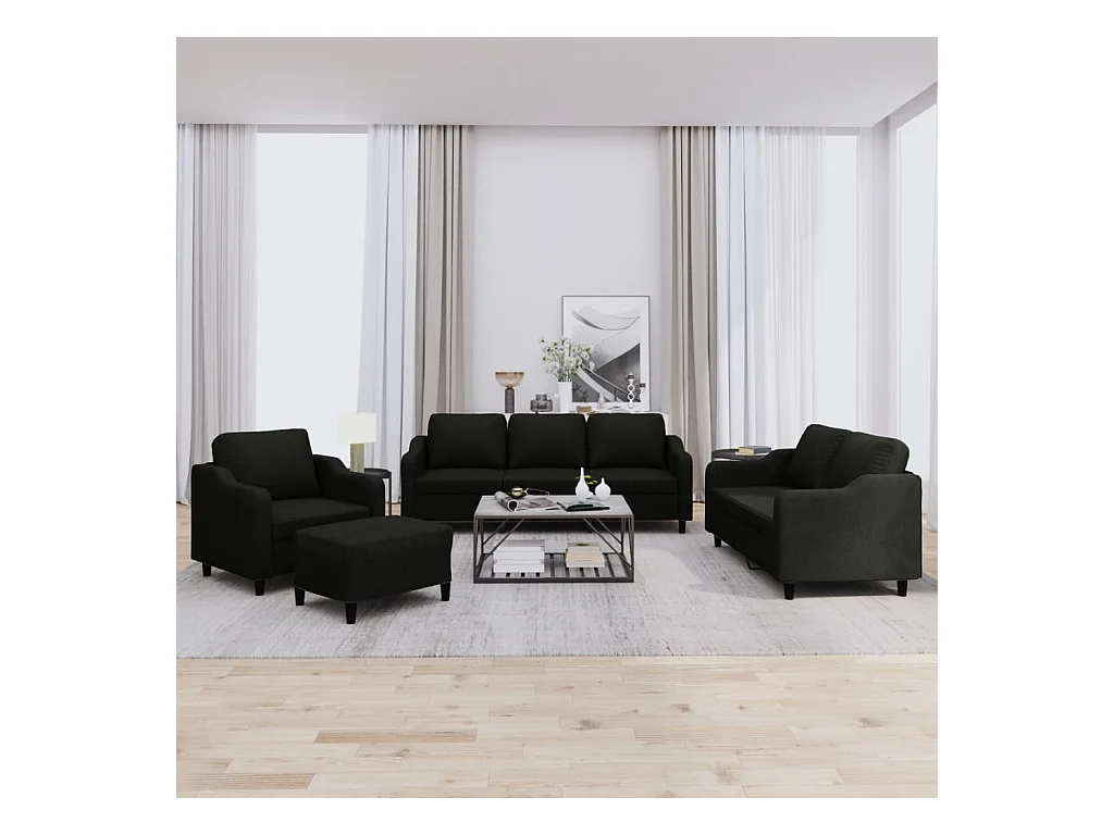 Ensemble de canapés 4 pcs avec coussins Noir Tissu