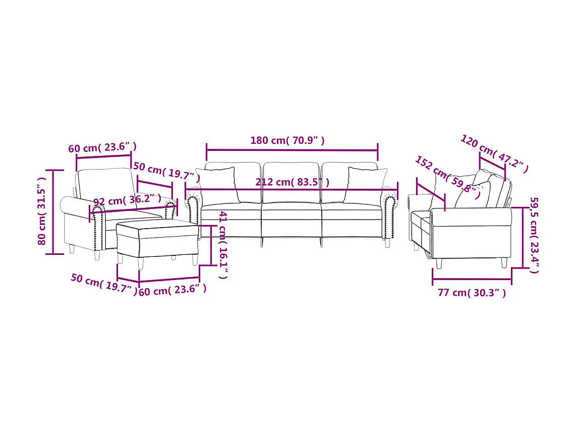 Ensemble de canapés 4 pcs avec coussins rouge bordeaux velours