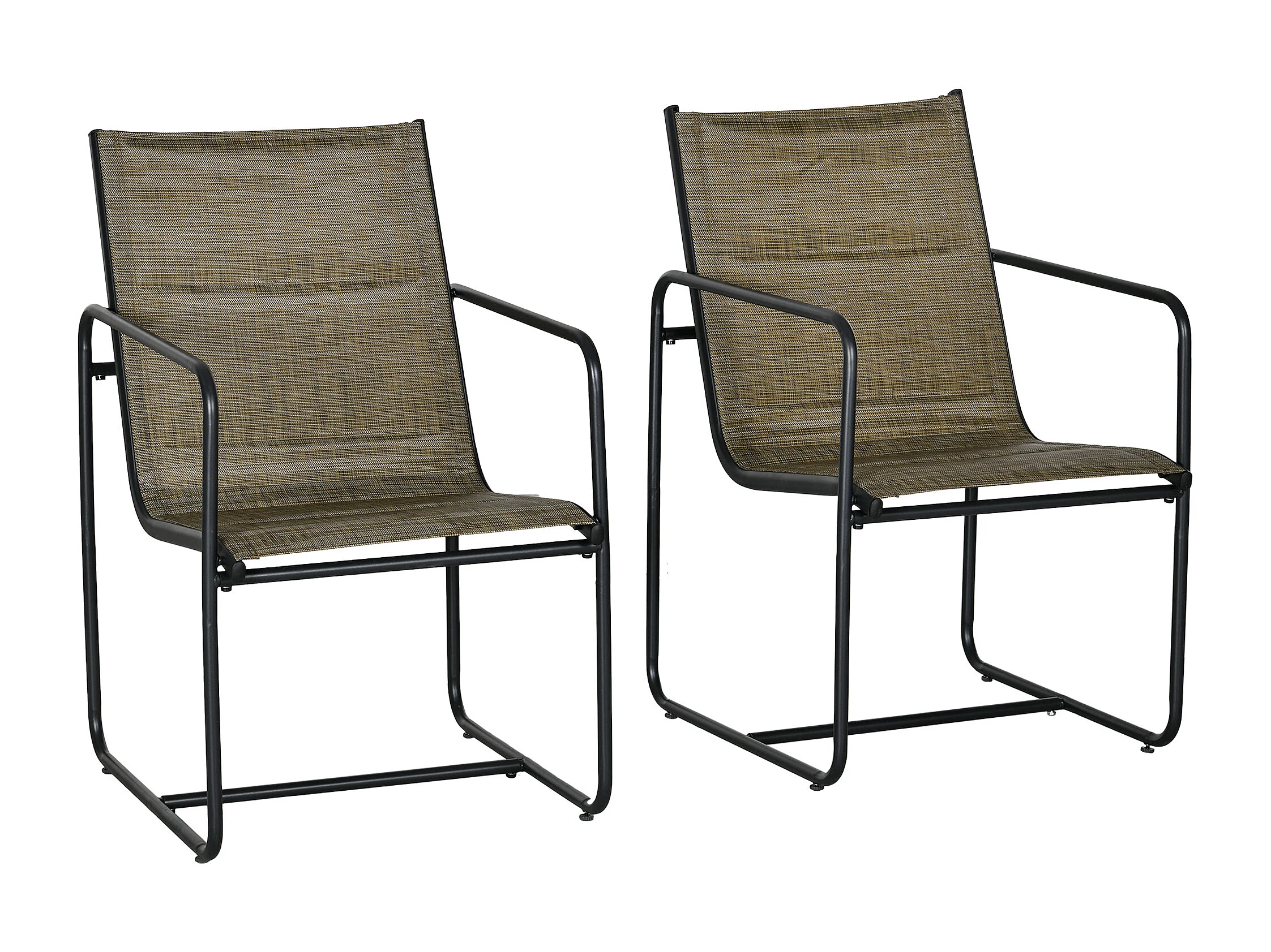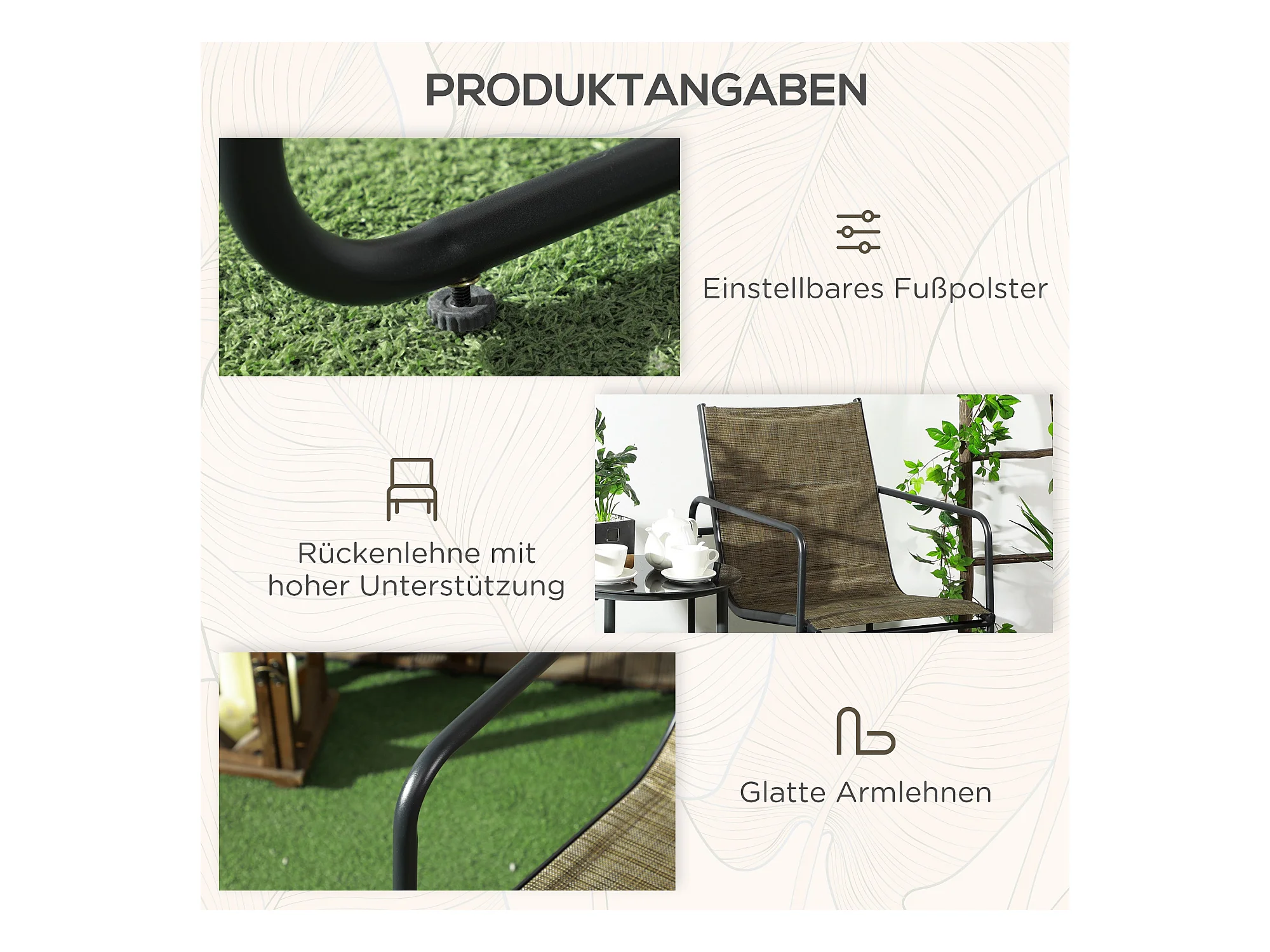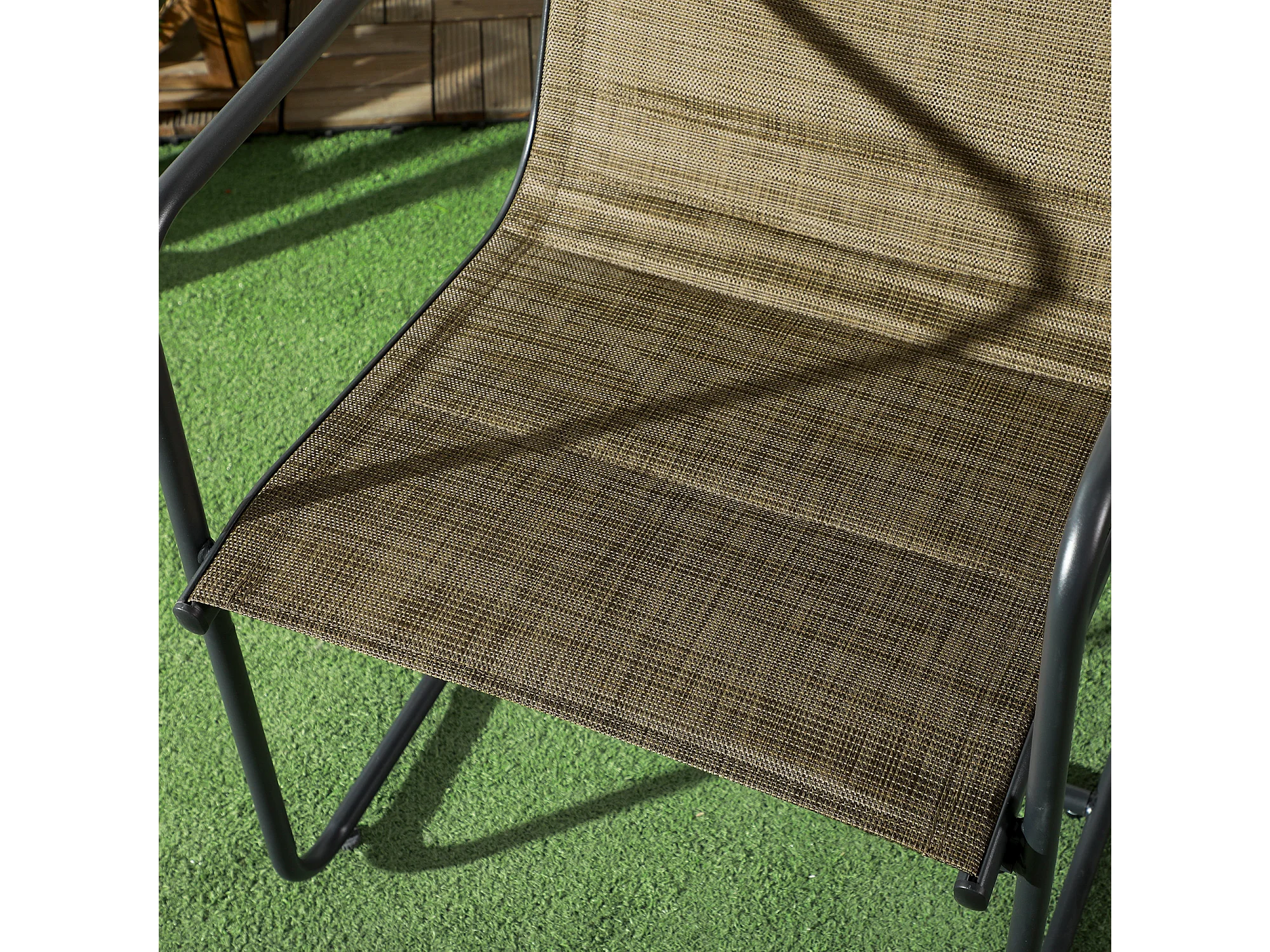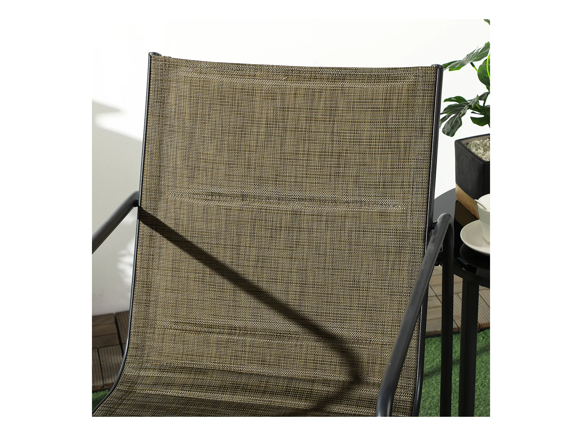 Ensemble de chaises de balcon avec accoudoirs, structure métallique, tissu respirant, couleur brune (54x66.5x88 cm)