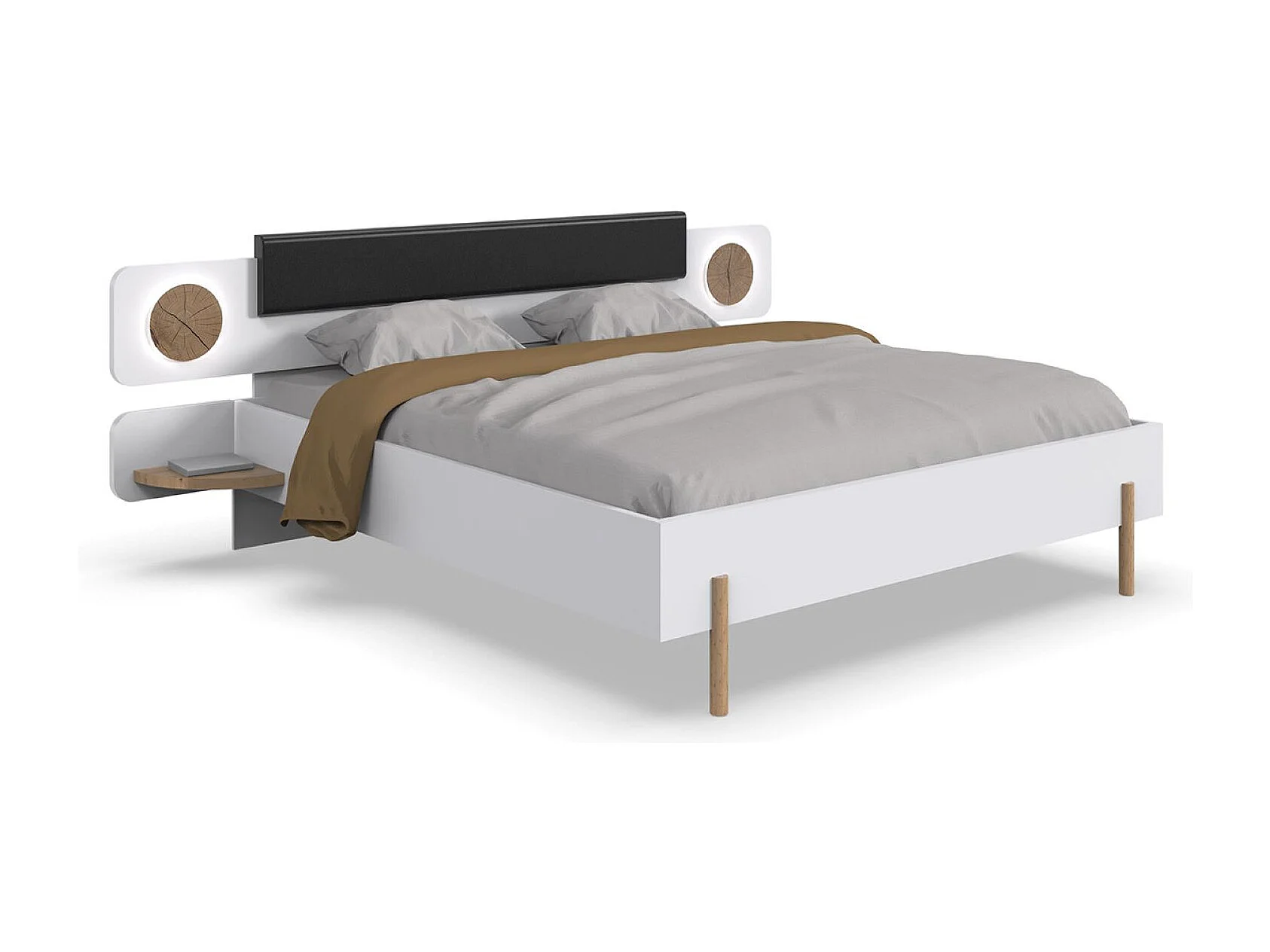 Ensemble de chambre à coucher complète coloris blanc, rechampis imitation bois