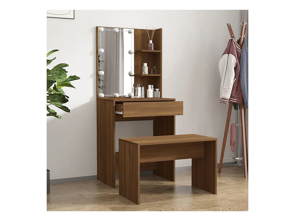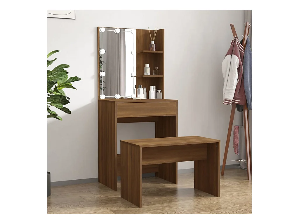 Ensemble de coiffeuse avec LED Chêne marron Bois d'ingénierie 2