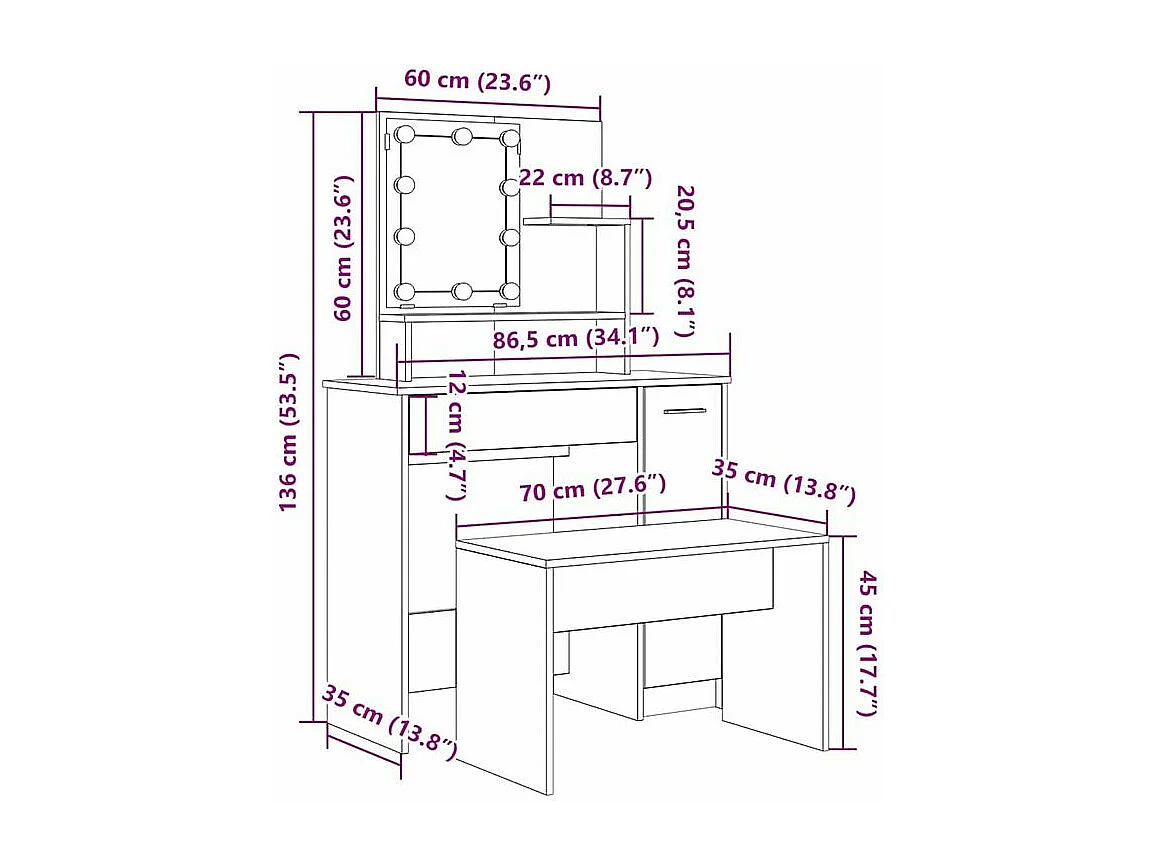 Ensemble de coiffeuse avec LED vieux bois bois d'ingénierie