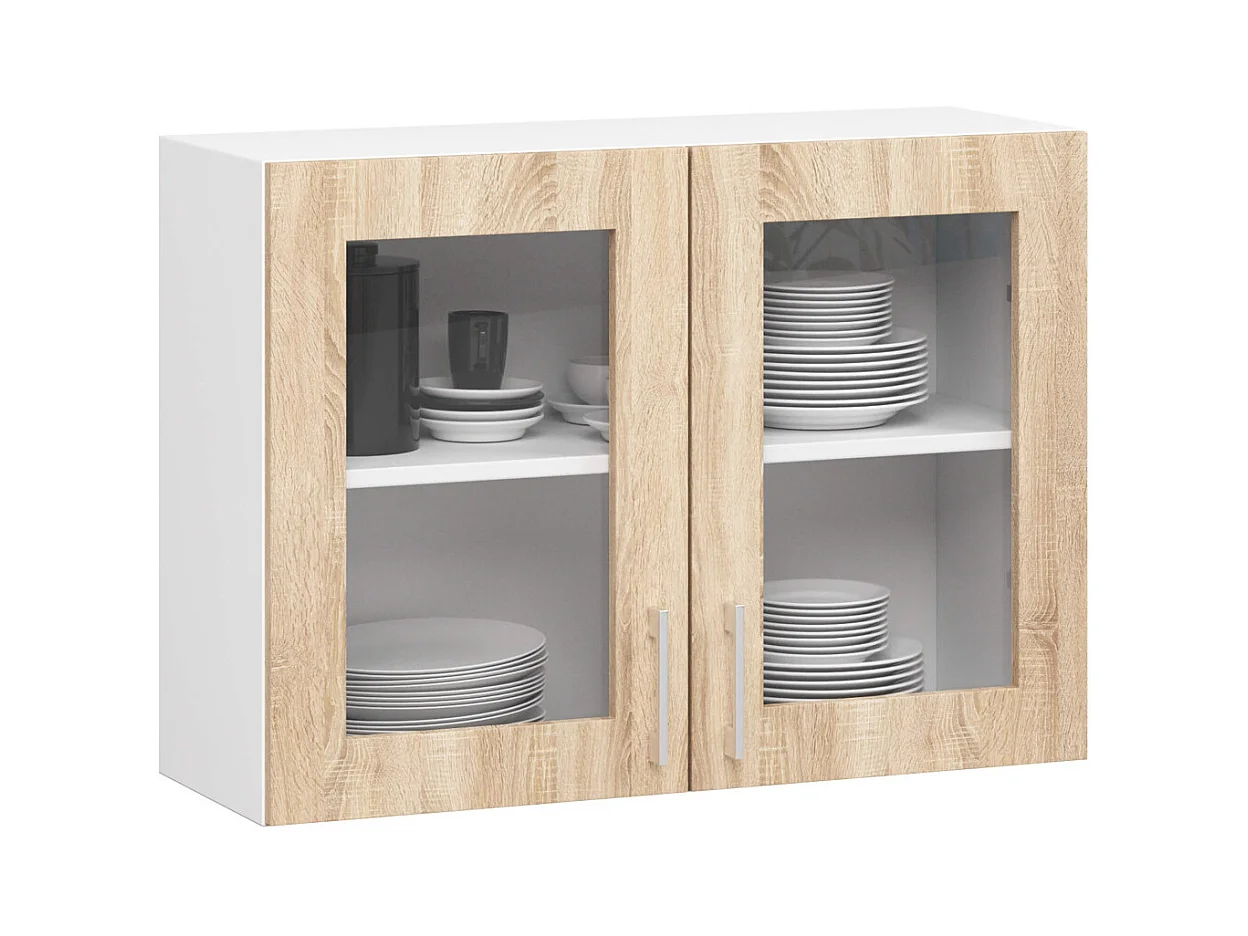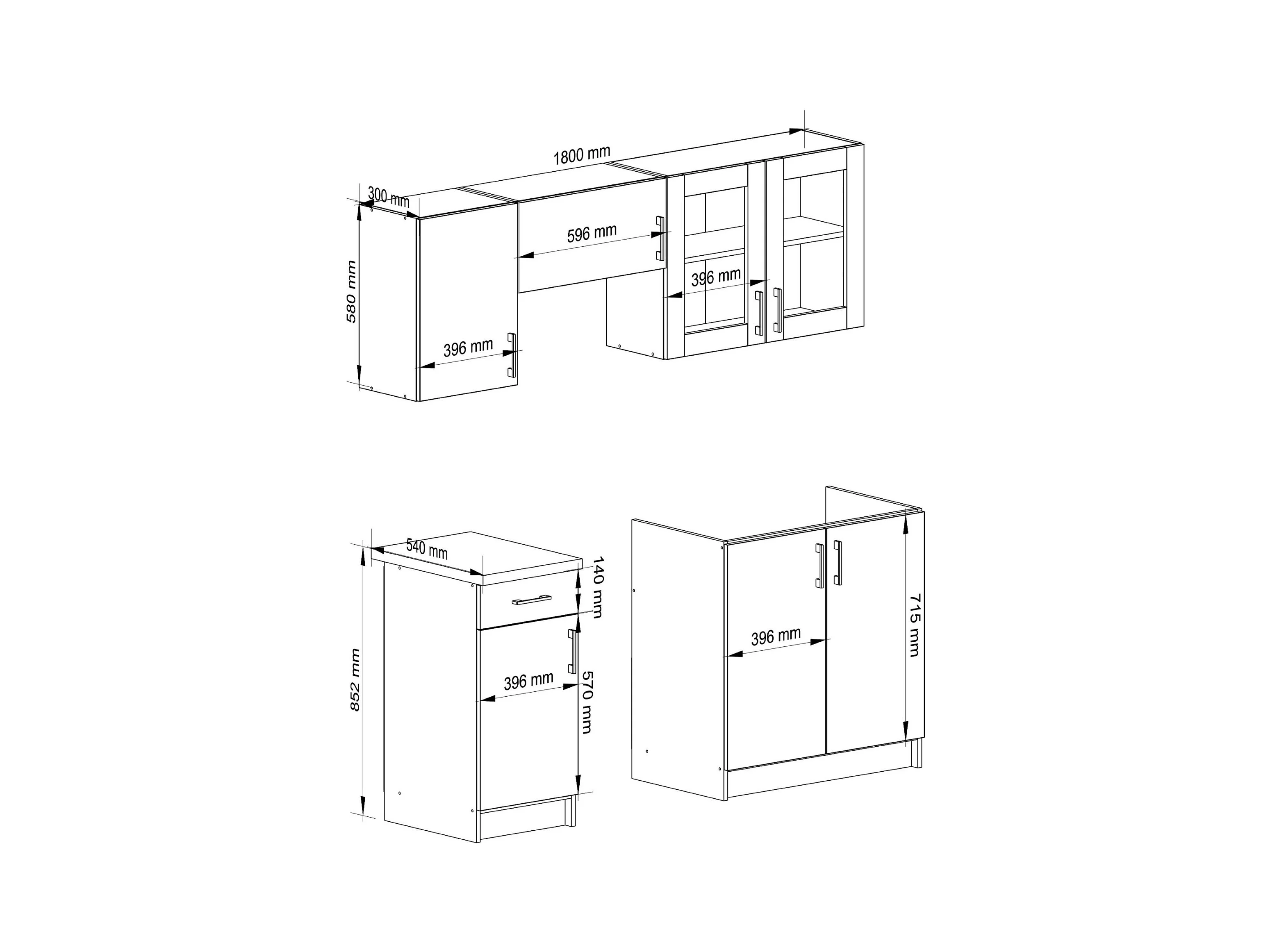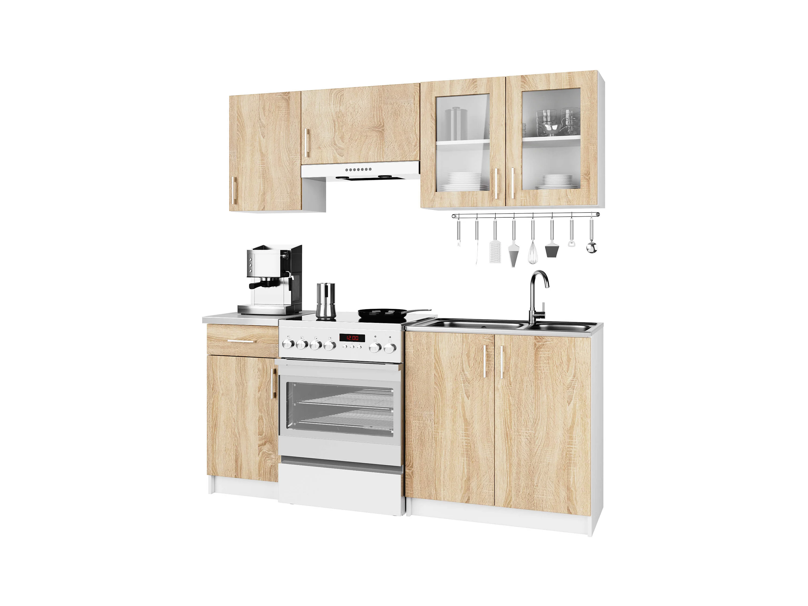 Ensemble de cuisine vitré AKORD LIMA 1.8m Blanc 180 cm 7 portes 1 tiroir façade Chêne Sonoma 8 étagères 180x44,5x203 cm