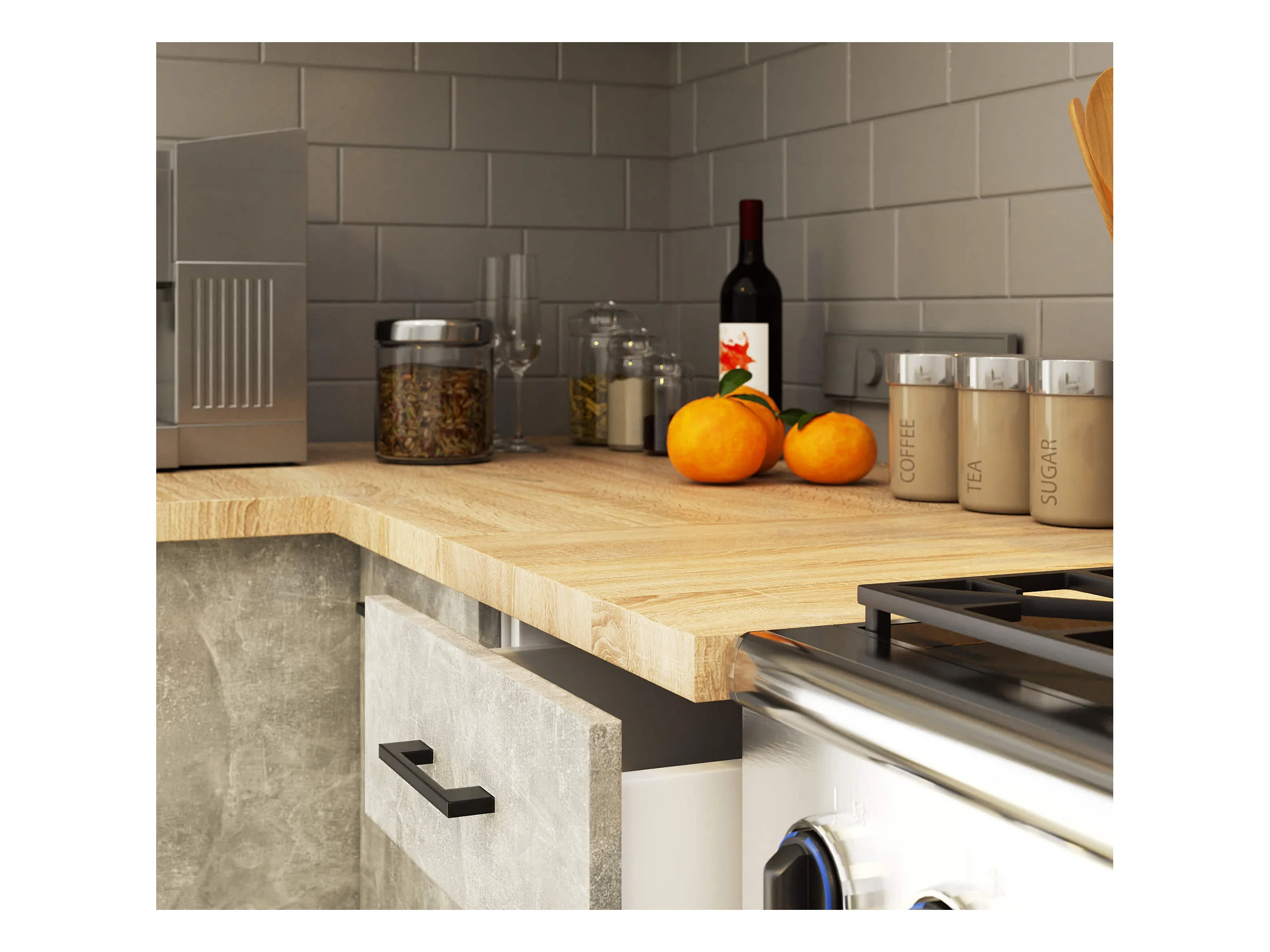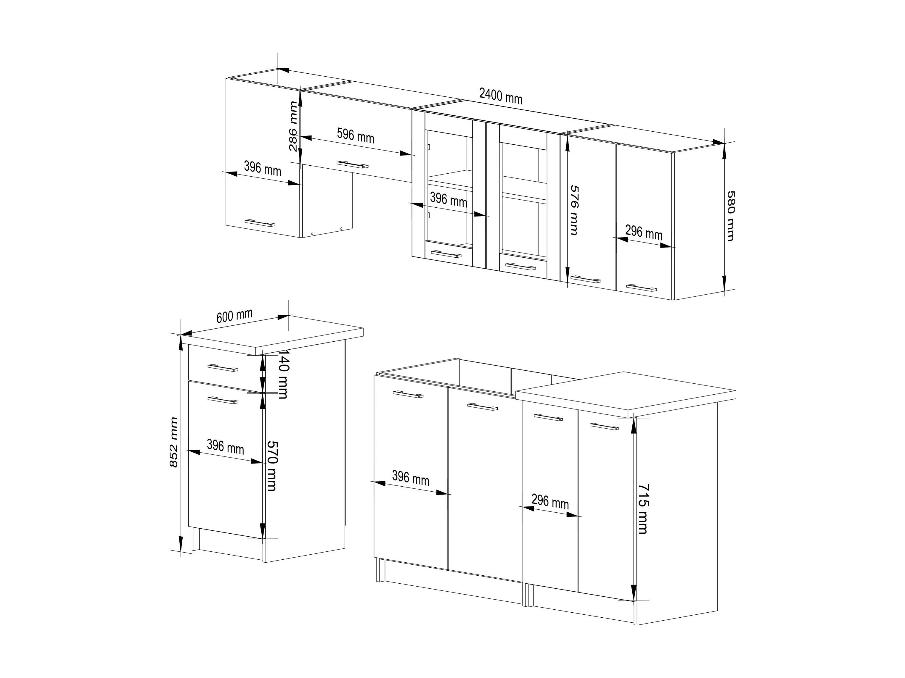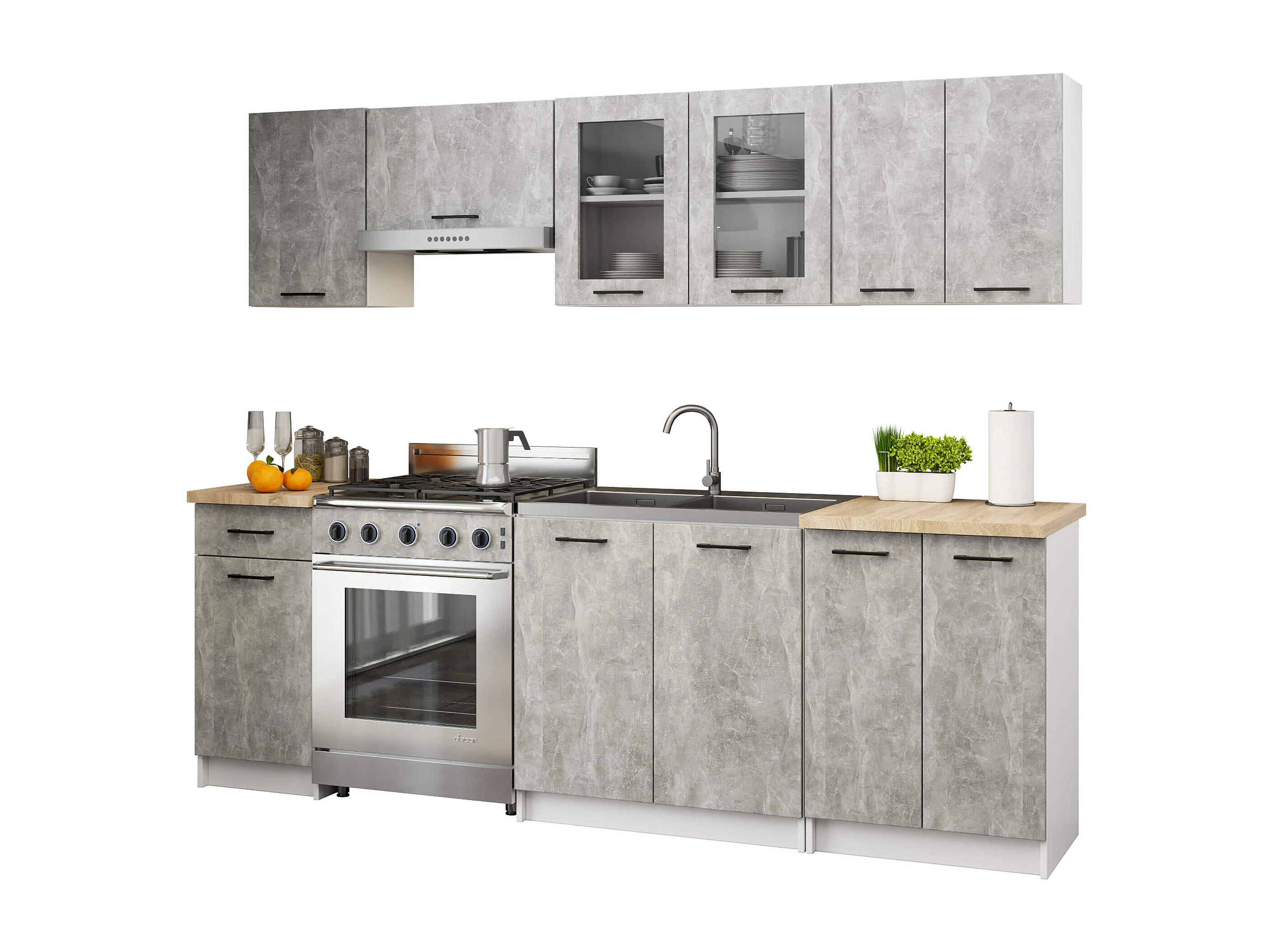 Ensemble de cuisine vitré AKORD OLIWIA 2.4m Blanche 240 cm 11 portes 1 tiroir façade Béton 240x46x203 cm