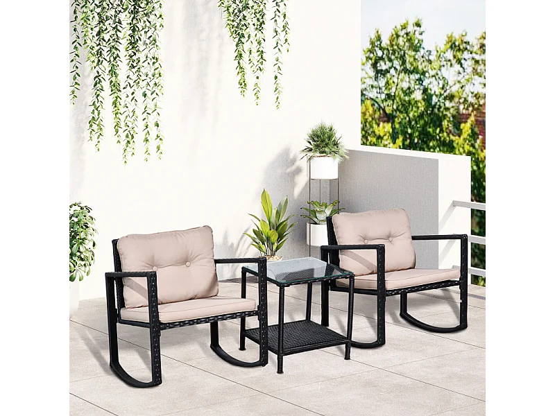 Ensemble de jardin à bascule 2 places MOKA marron et noir