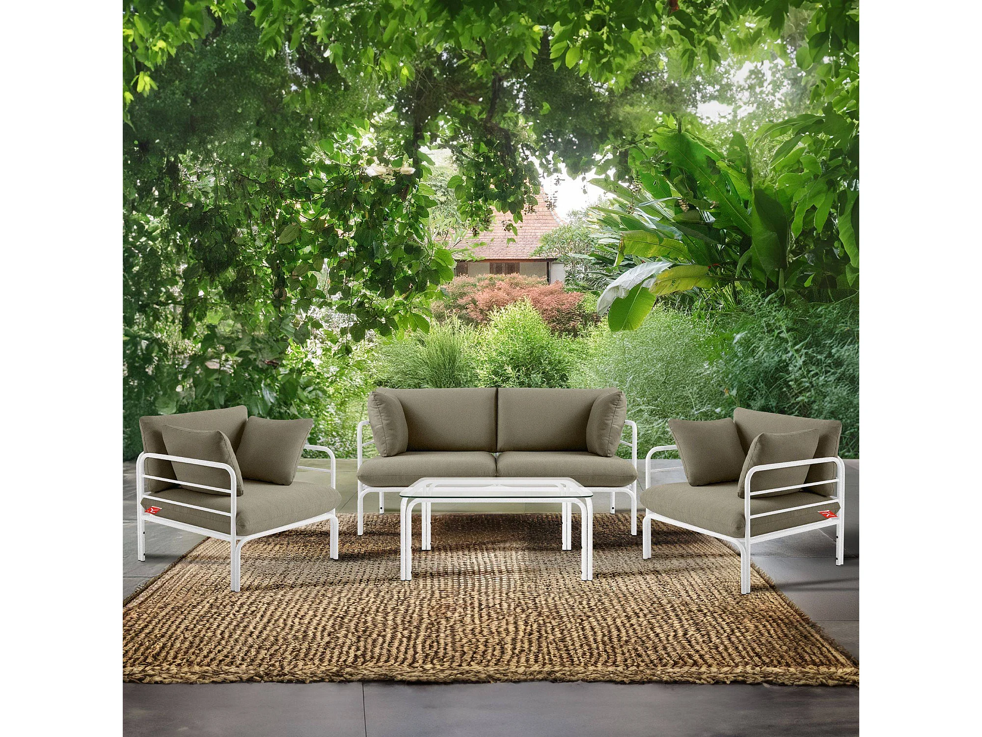 Ensemble de jardin RAMBE blanc et beige, dimensions 150x80x80 cm, idéal pour l'extérieur