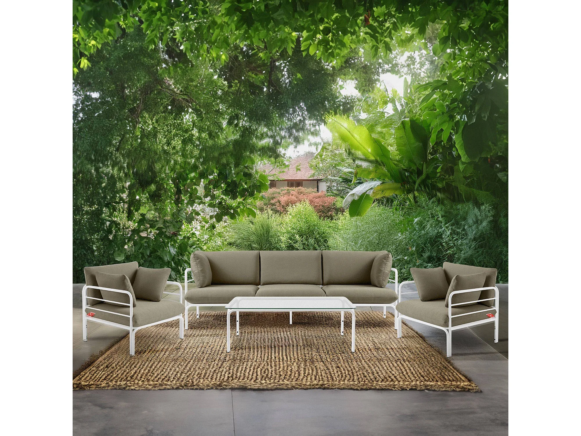Ensemble de jardin RAMBE blanc et beige, dimensions 225x80x80 cm, idéal pour extérieur
