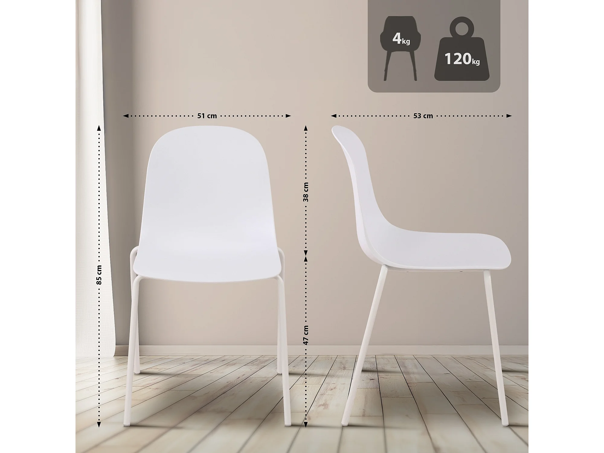 Table rectangulaire et 2 chaises de jardin plastique blanc Camille