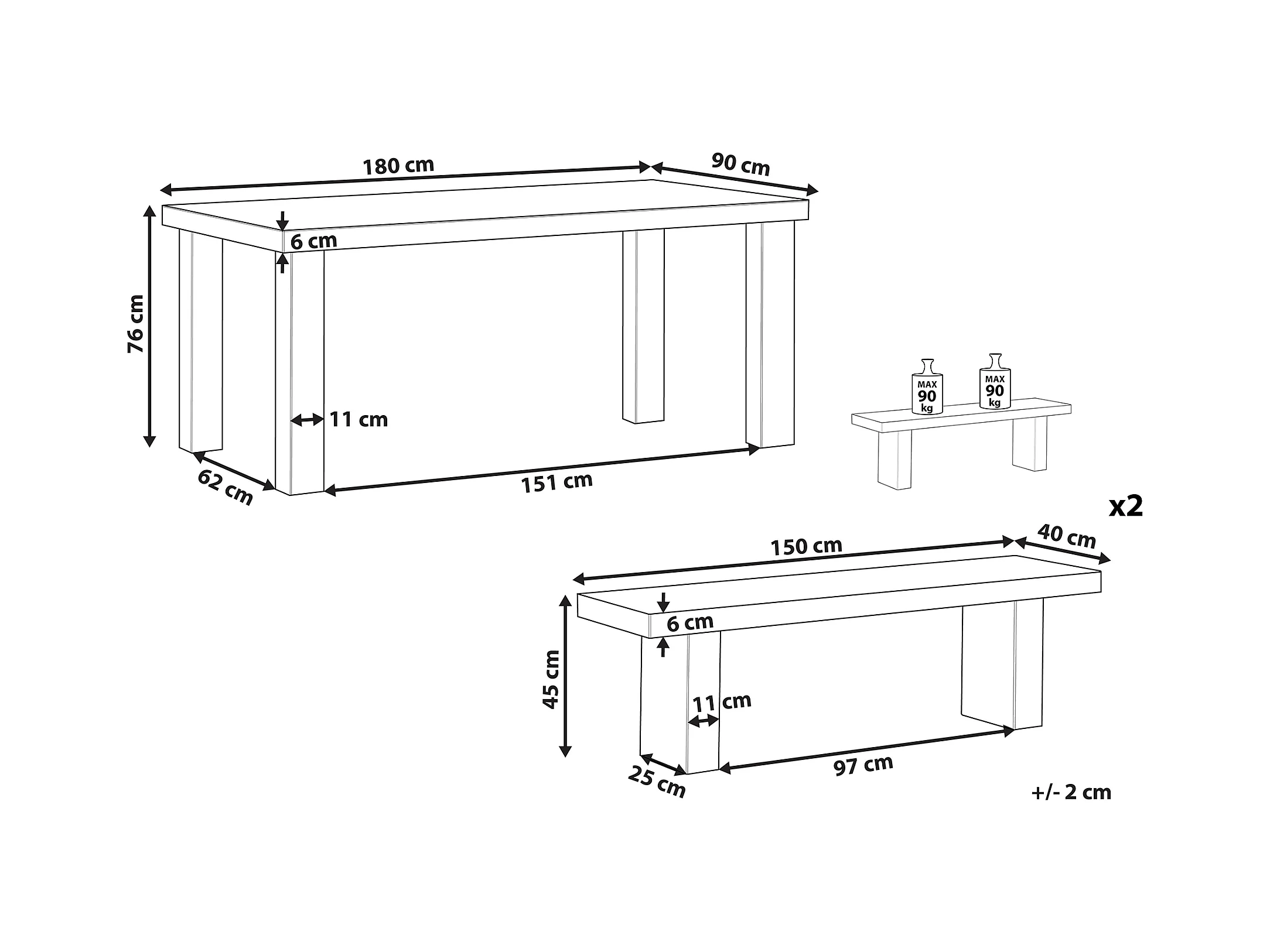 Salle à manger de jardin avec bancs 4 places TARANTO Béton Gris