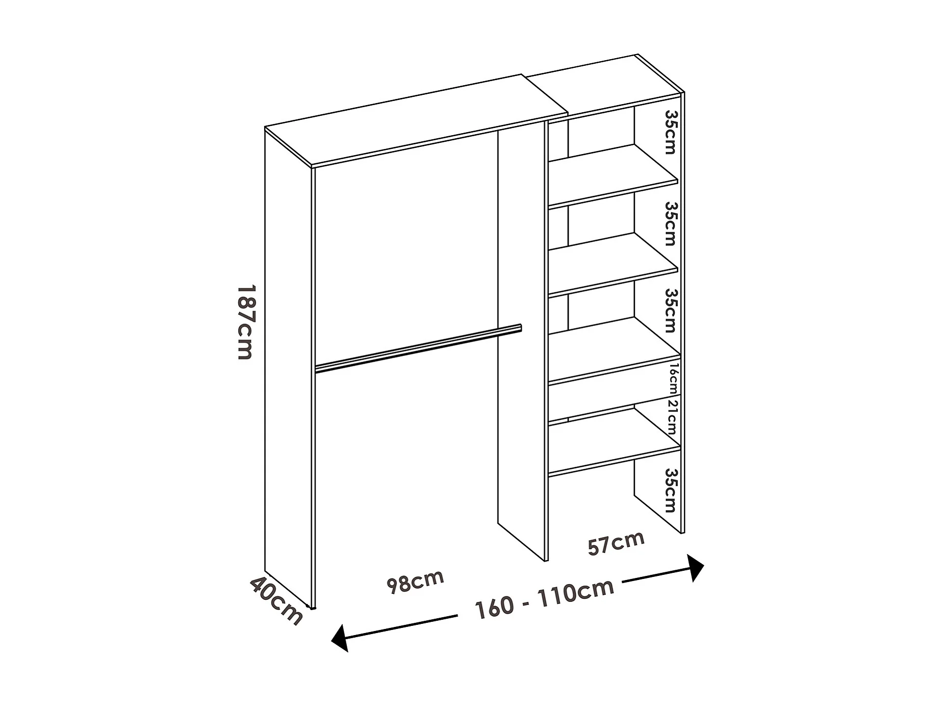 Ensemble de lit gigogne avec 2 tiroirs + Table de nuit + armoire pour enfant coloris blanc