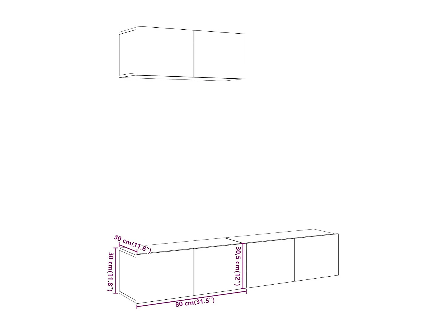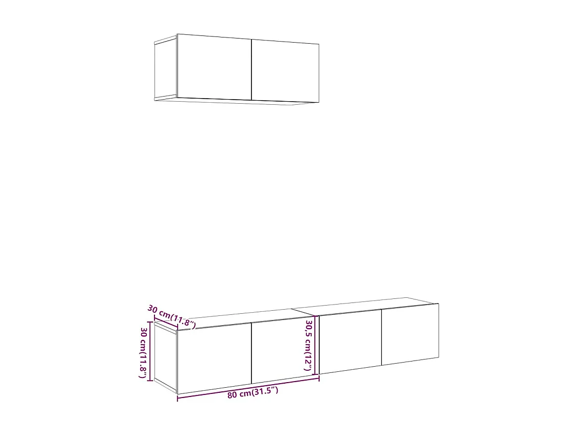 Ensemble de meuble TV mural 3 pièces vieux bois bois d'ingénierie
