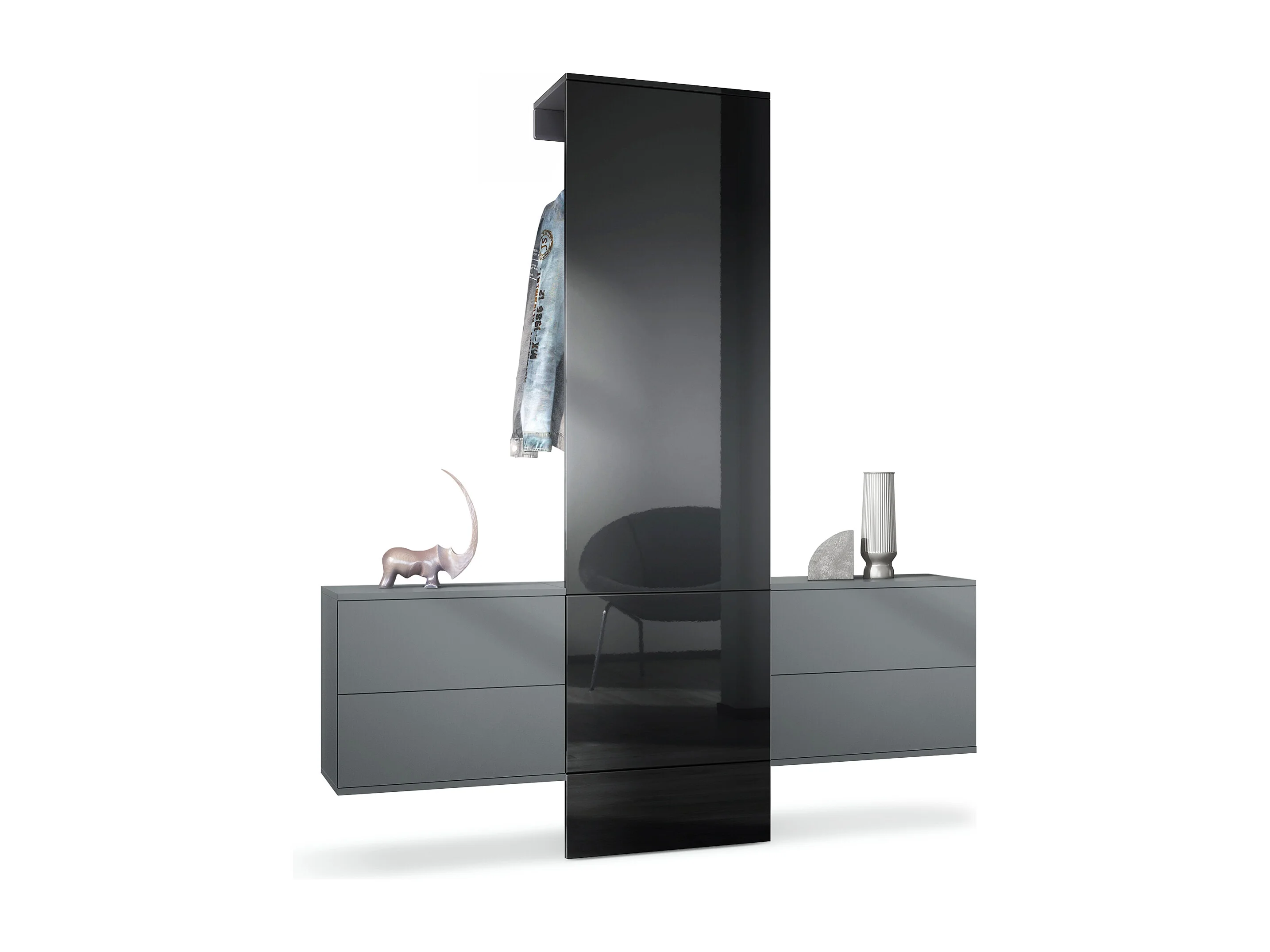 Vestiaire Garderobe Carlton Set 3, Corps en anthracite mat / Panneau portemanteau en noir haute brillance (157 x 193 x 35 cm)