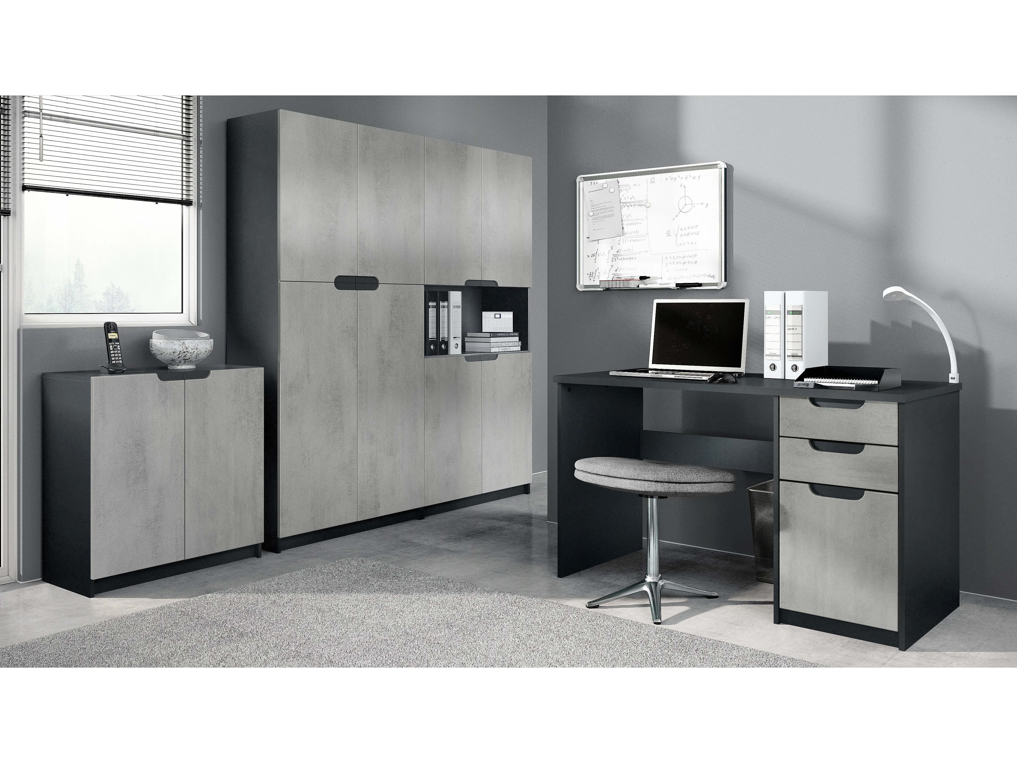 Ensemble de meubles de bureau Armoire Commode Rangement Logan, Corps en noir mat / Façades en aspect béton oxyde