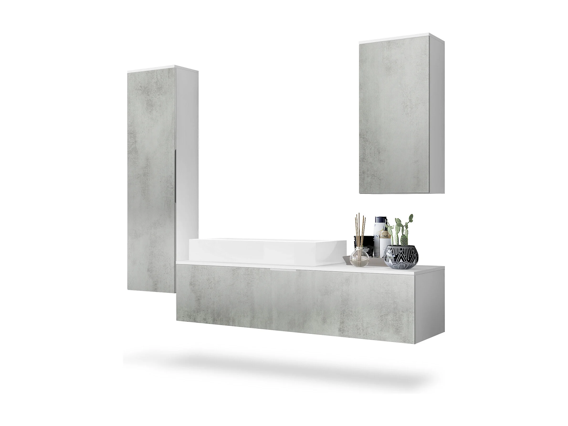 Ensemble de Meubles de Bains Beach, Corps en Blanc Mat/Façades en Aspect béton oxyde-optique avec Vasque à poser