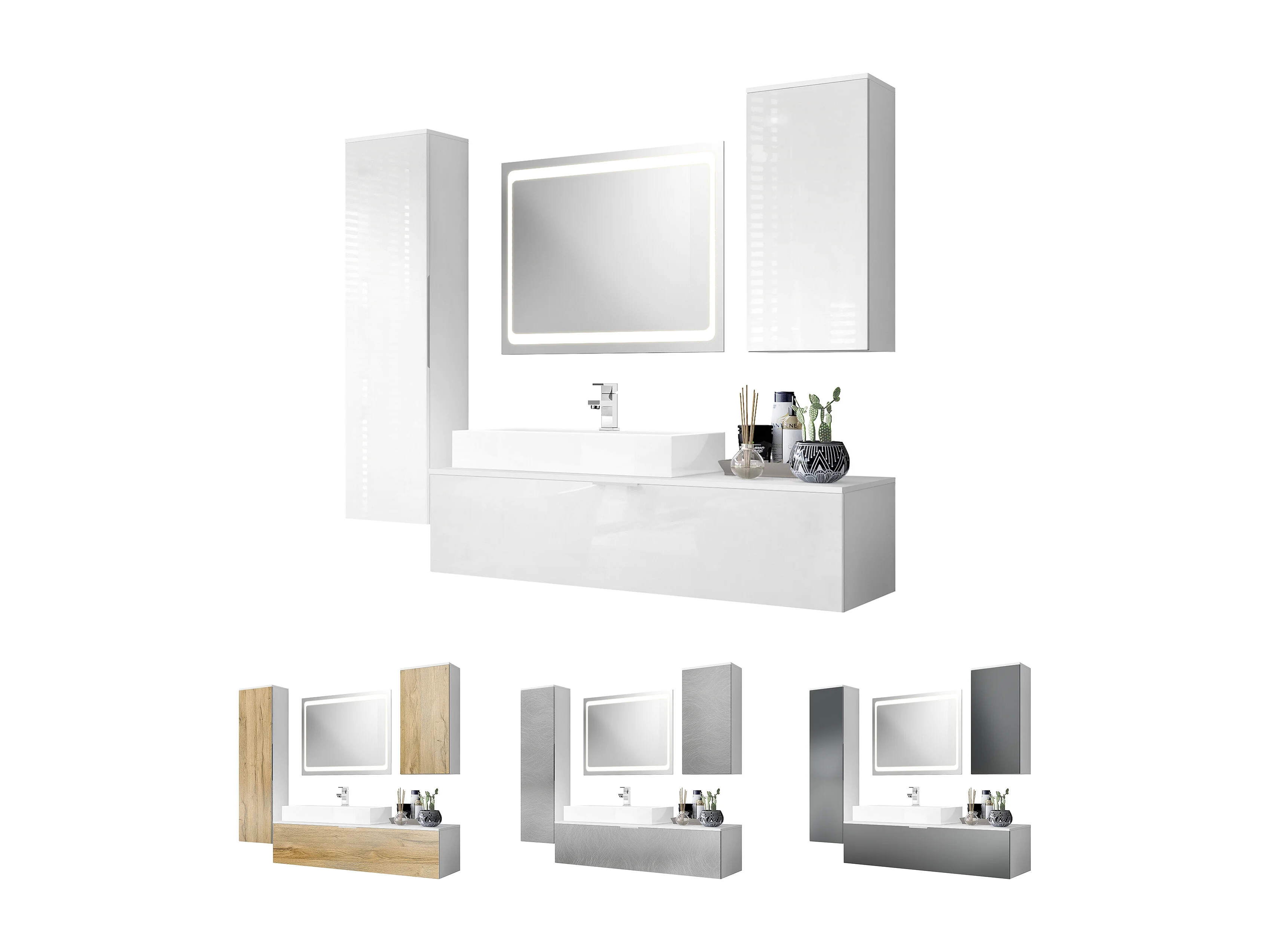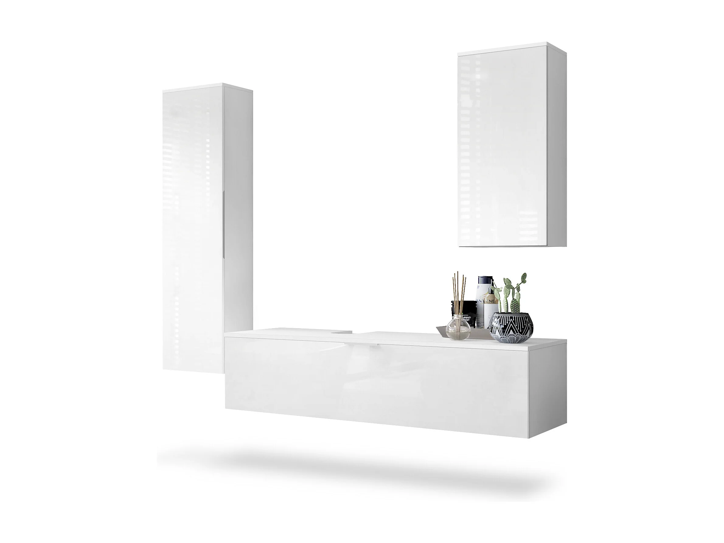 Ensemble de Meubles de Bains Beach, Corps en Blanc Mat/Façades en Blanc haute brillance