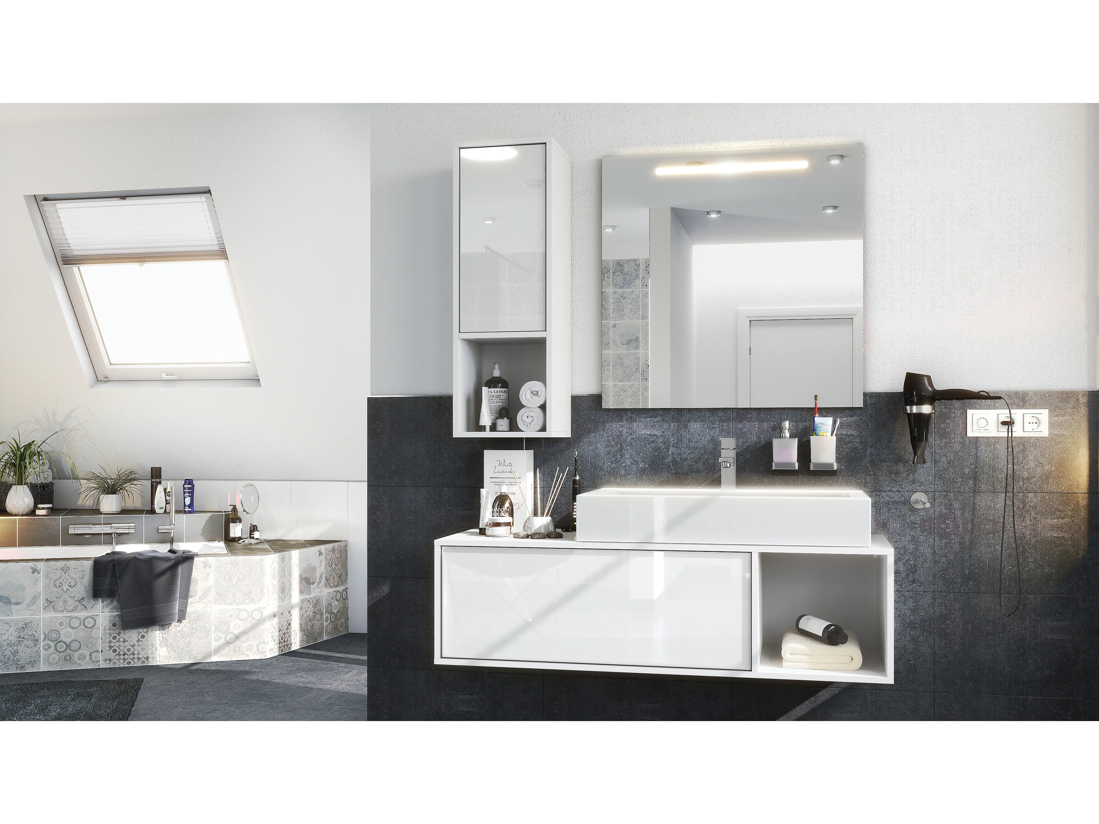 Ensemble de meubles de bains La Costa, Corps en Blanc mat, Façades en Blanc haute brillance, avec Miroir LED