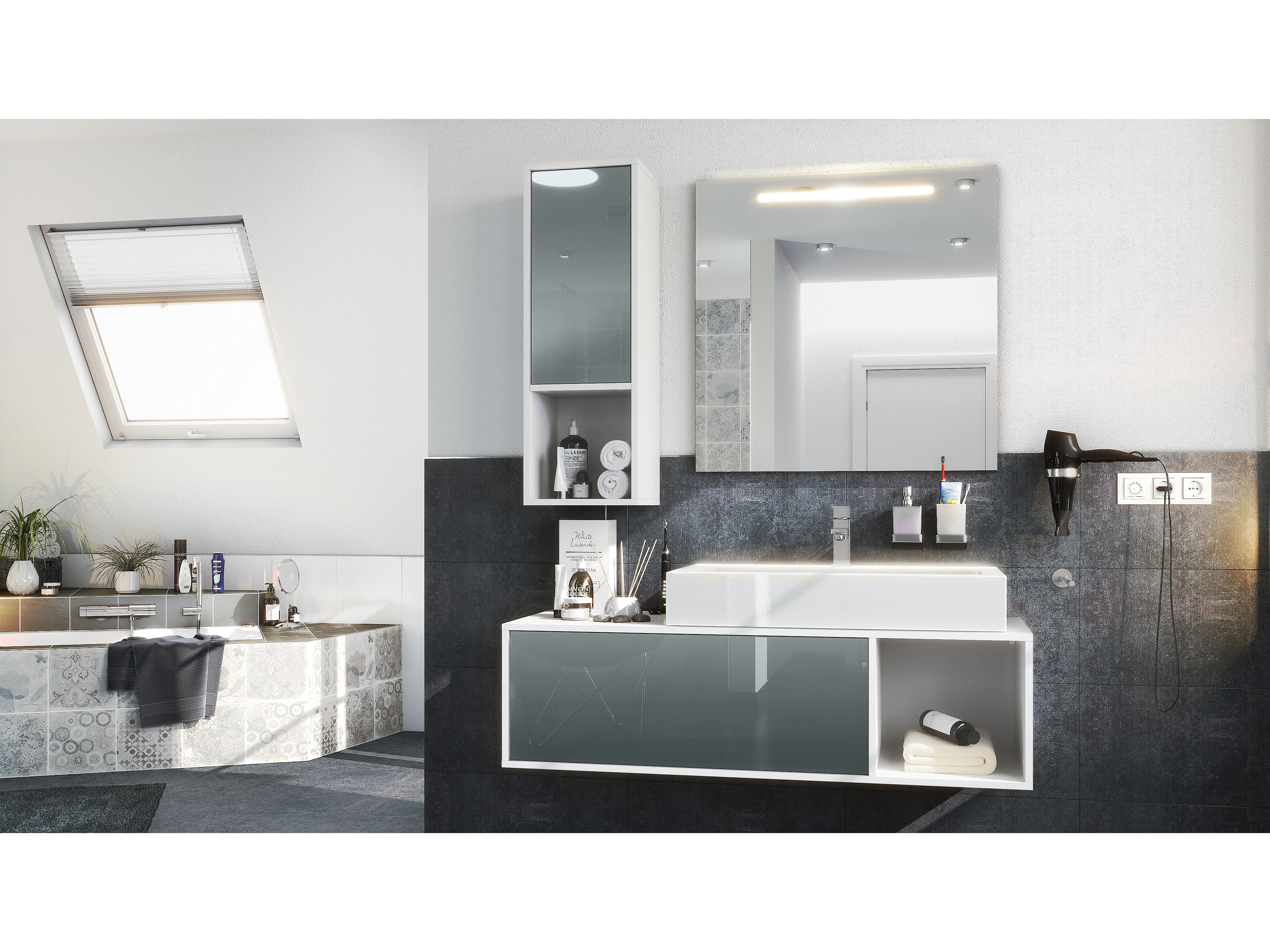 Ensemble de meubles de bains La Costa, Corps en Blanc mat, Façades en Gris haute brillance, avec Miroir LED
