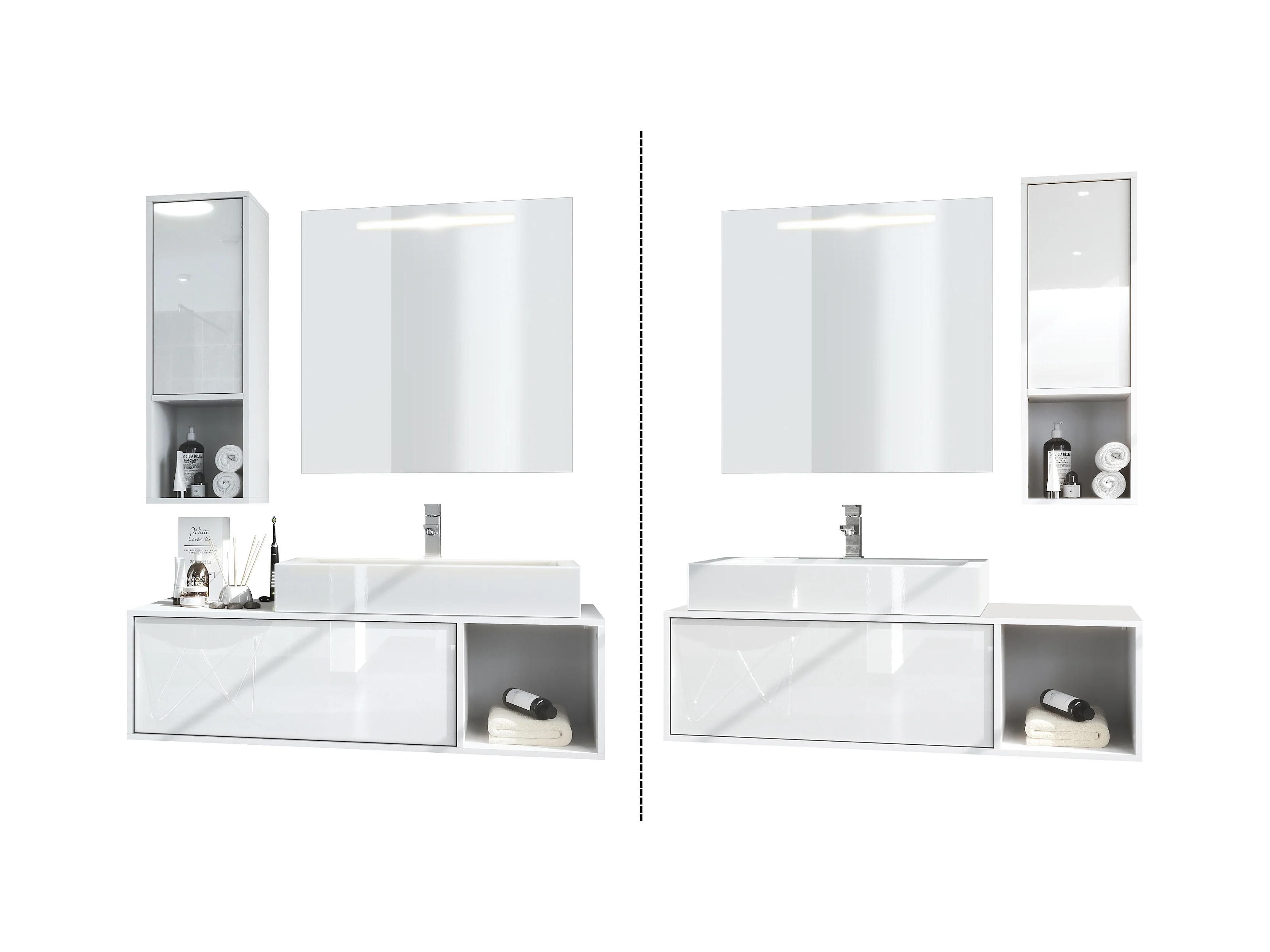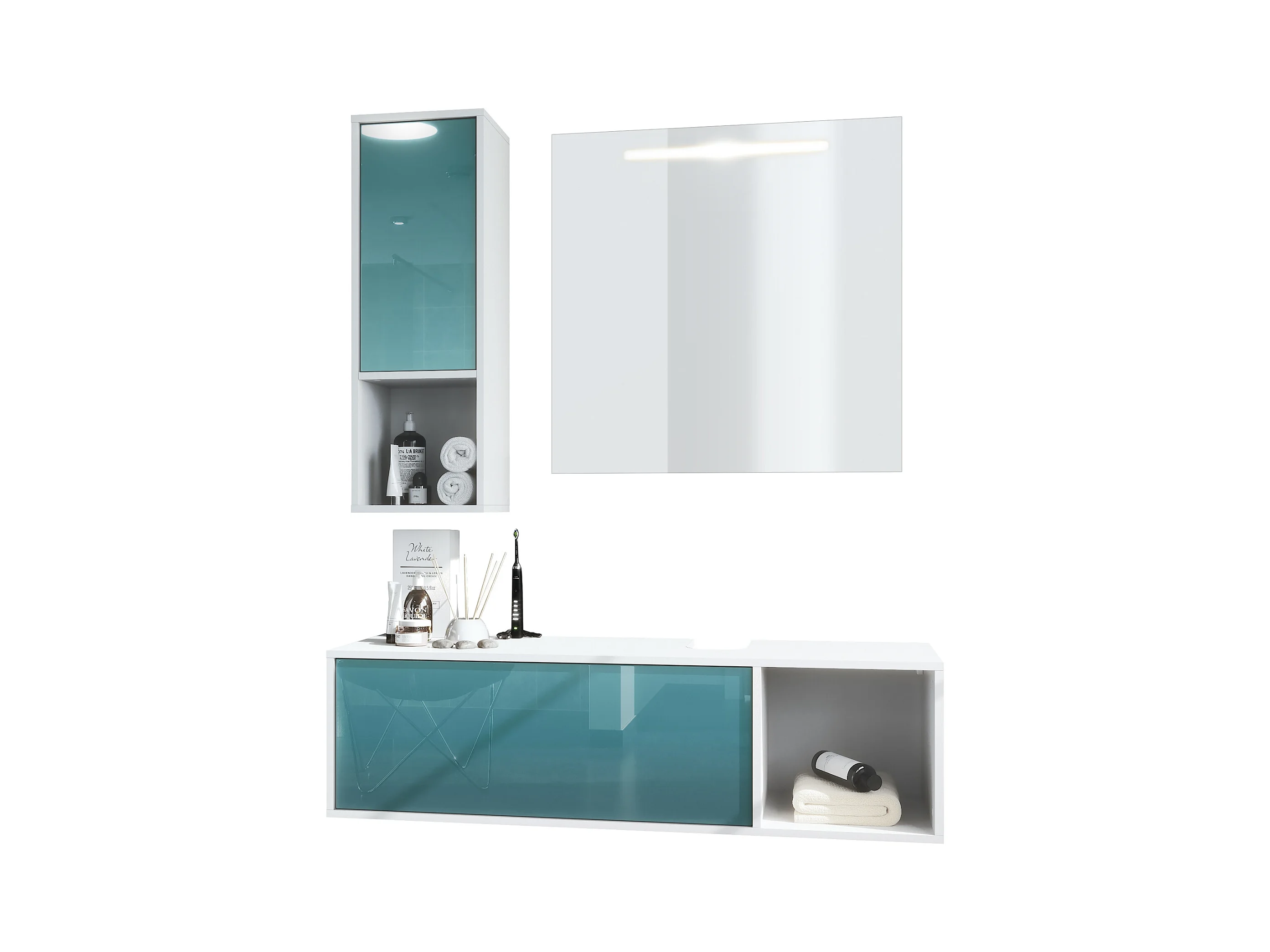 Ensemble de meubles de bains La Costa, Corps en Blanc mat, Façades en Turquoise haute brillance, avec Miroir LED