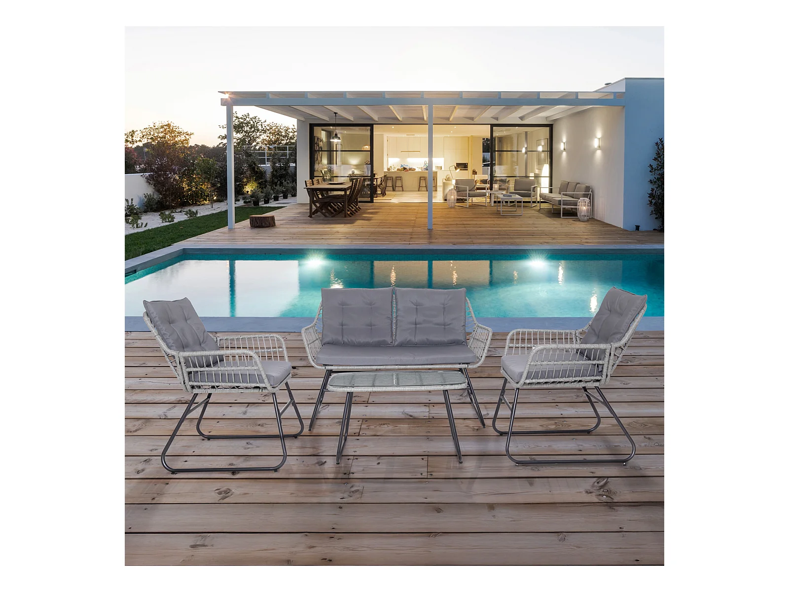 Ensemble de meubles de balcon SVITA CAPRI en polyrotin pour l'extérieur, 4 pièces Salon de jardin gris clair