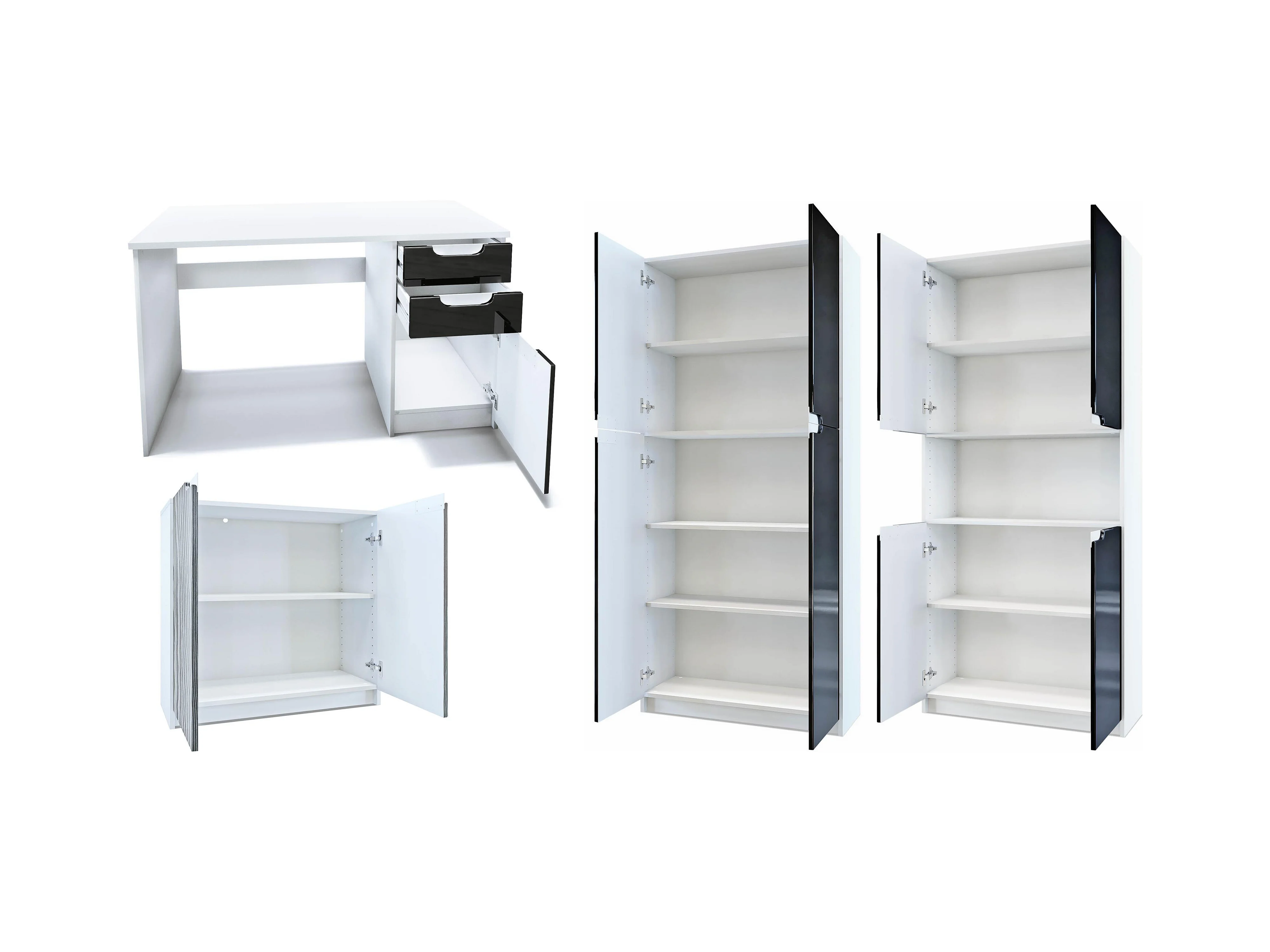 Ensemble de meubles de bureau Armoire Commode Rangement Logan, Corps en blanc mat / Façades en aspect béton oxyde