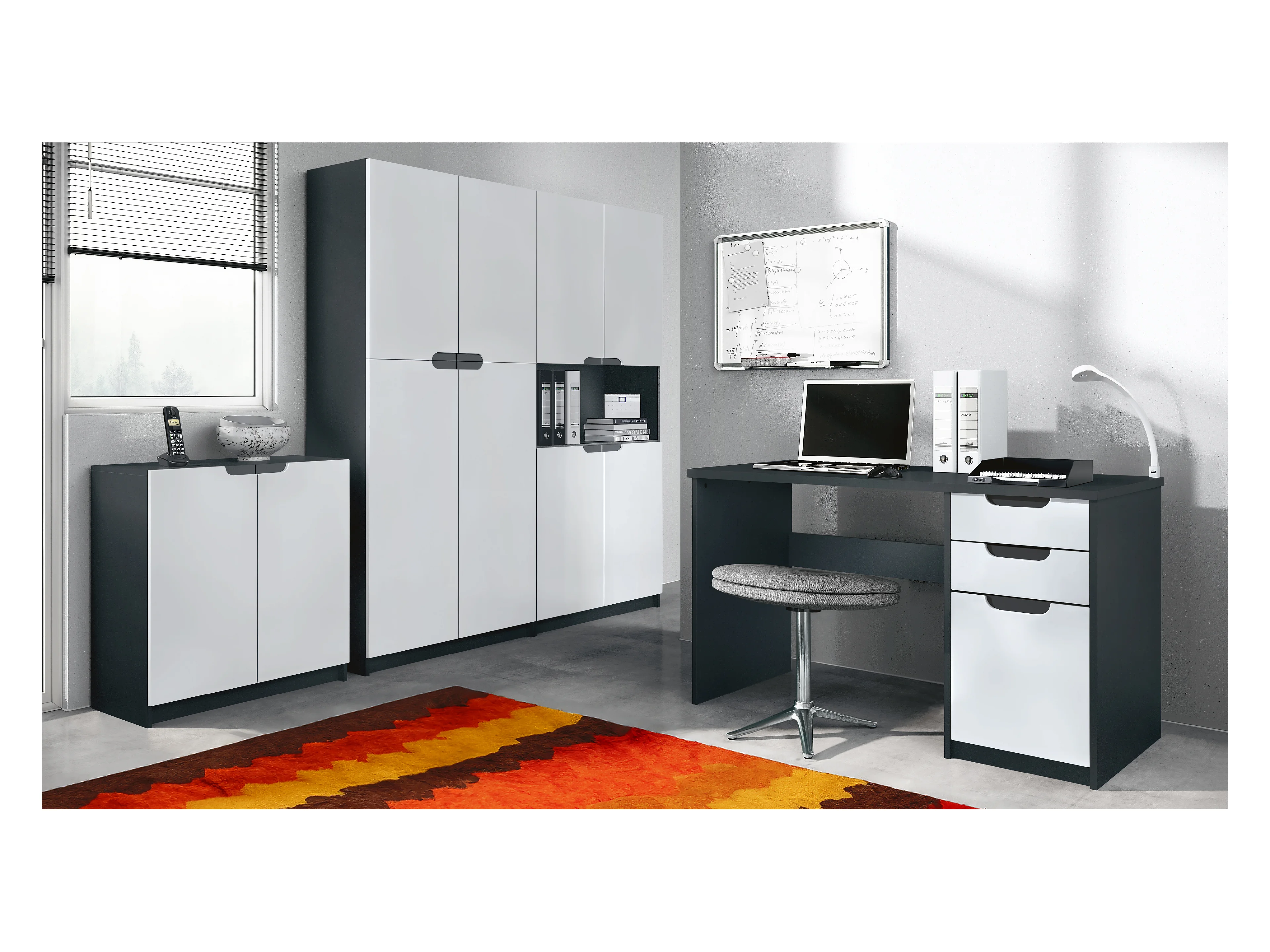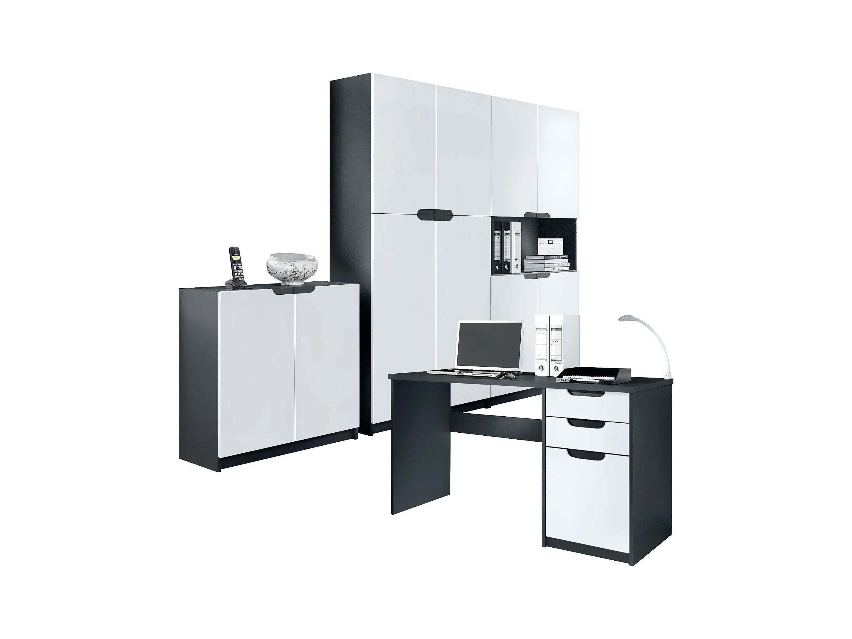 Ensemble de meubles de bureau Armoire Commode Rangement Logan, Corps en noir mat / Façades en blanc mat