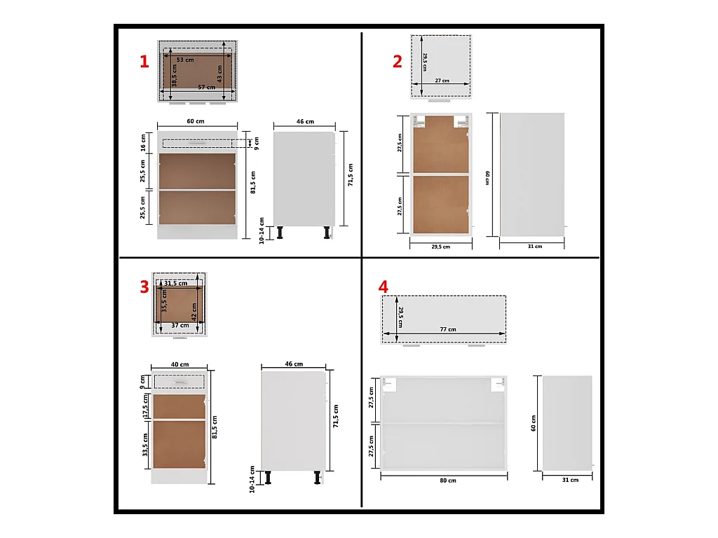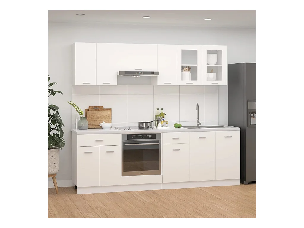 Ensemble de 8 meubles de cuisine "Lyon" en bois d'ingénierie blanc