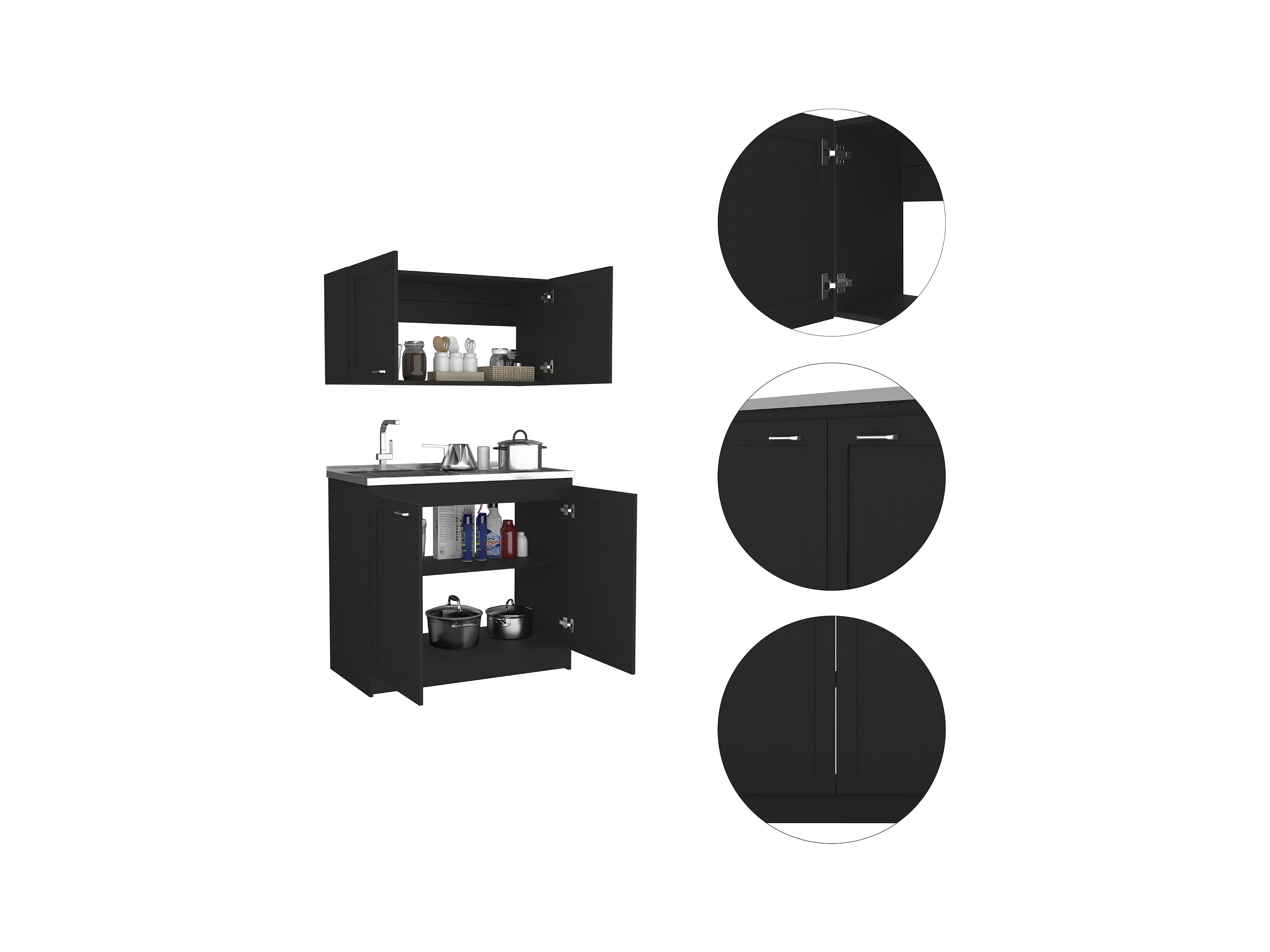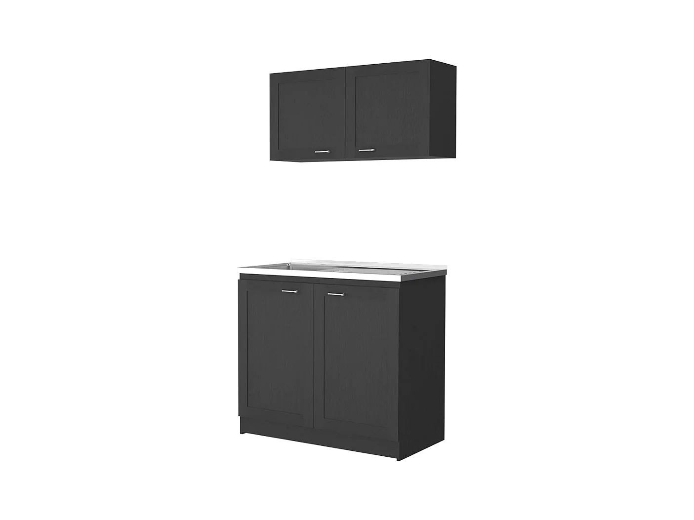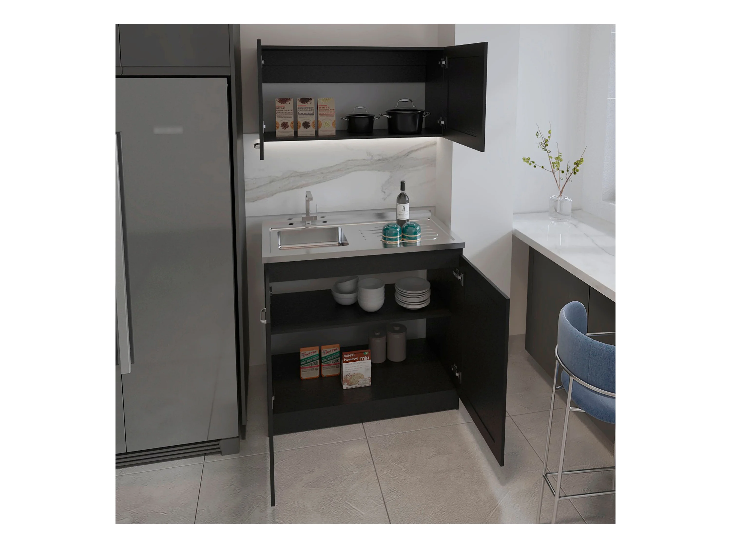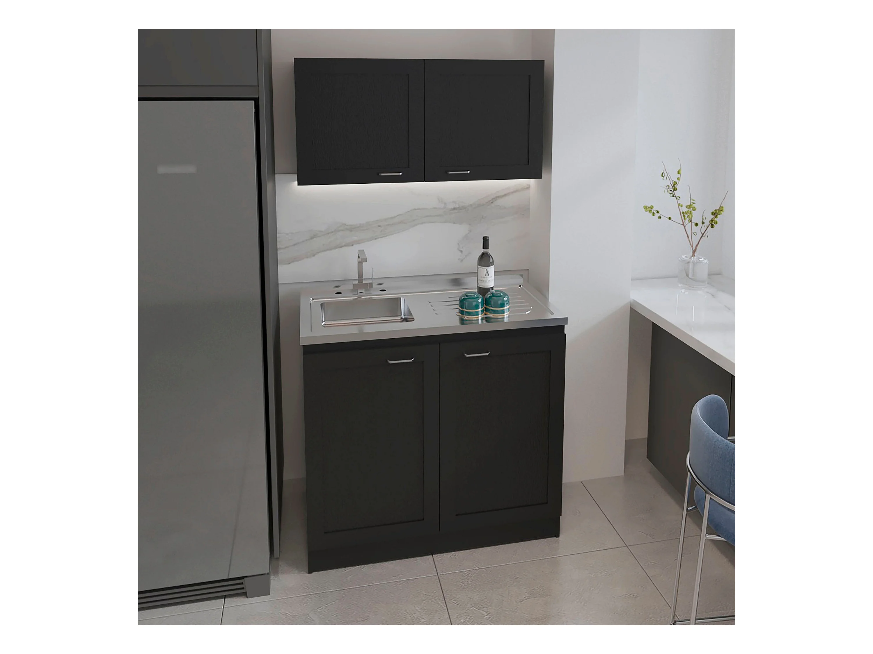 Ensemble armoire de cuisine Zurich en mélamine, avec plan de travail et hotte en acier inoxydable, 32 / 52 cm X 100 cm X 49 / 93.6 cm , Noir