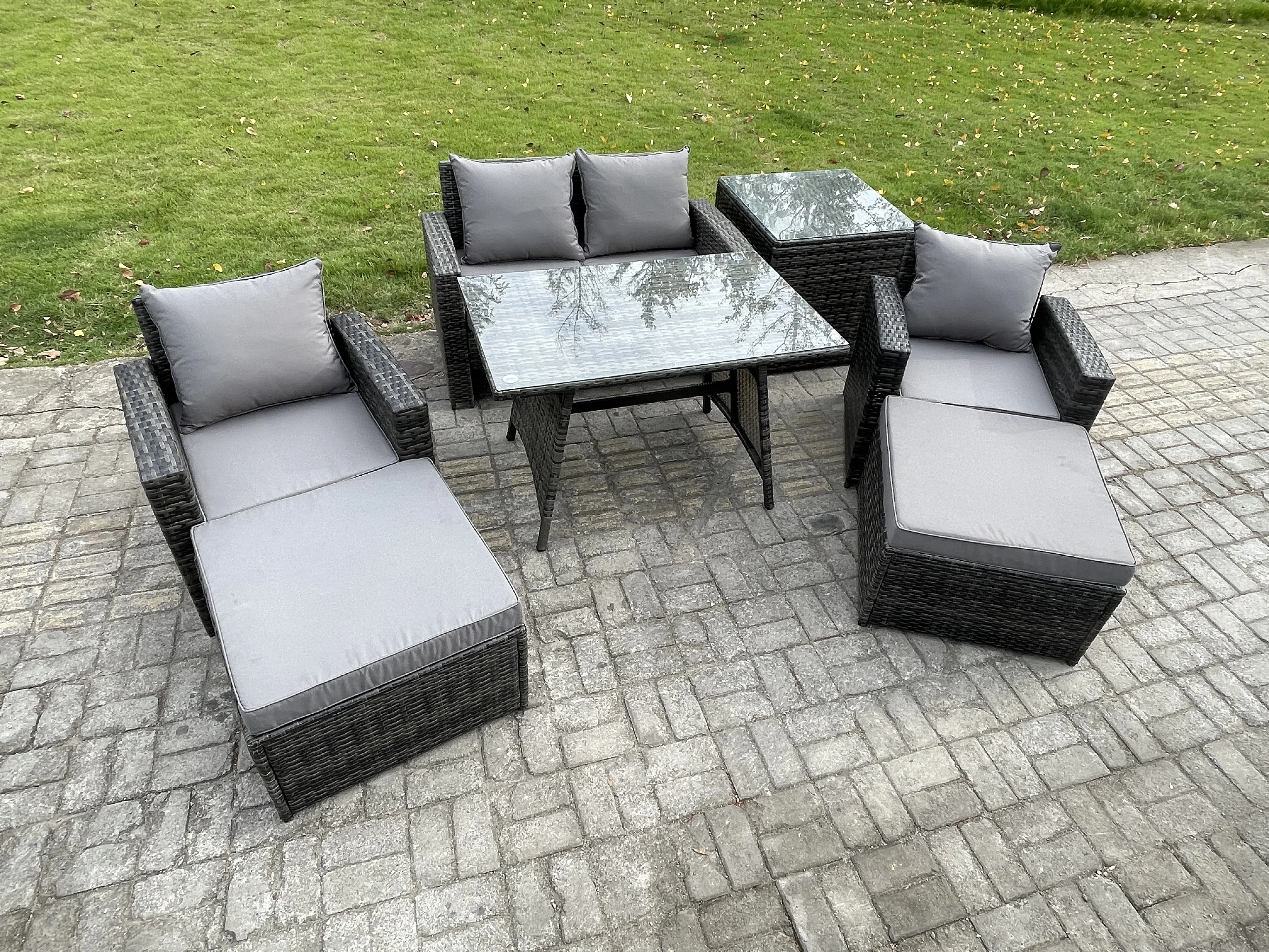 Ensemble de Meubles de Jardin avec Table à manger rectangulaire Fauteuil Canapé 2 places 2 Grand tabourets Table d'appoint