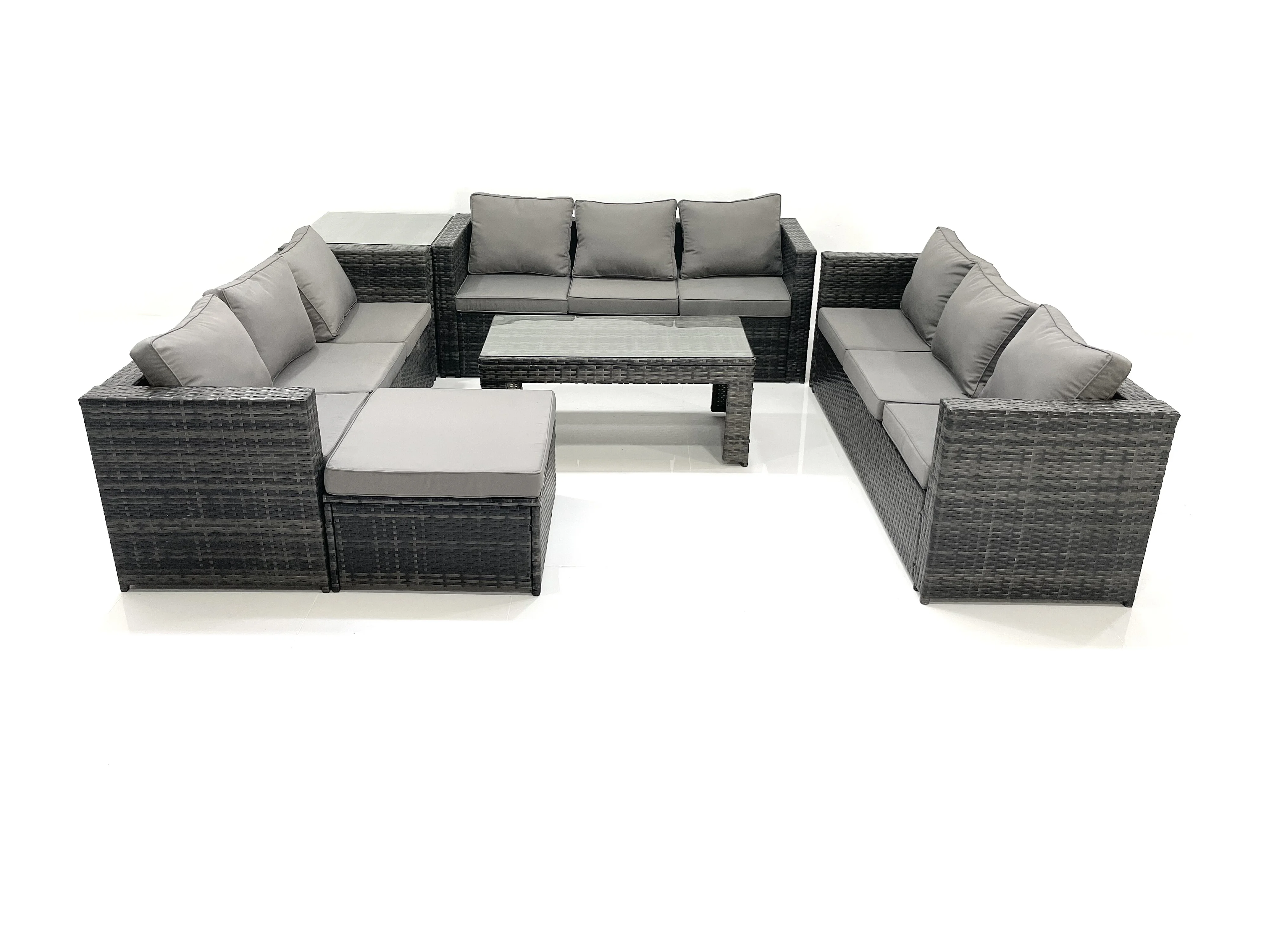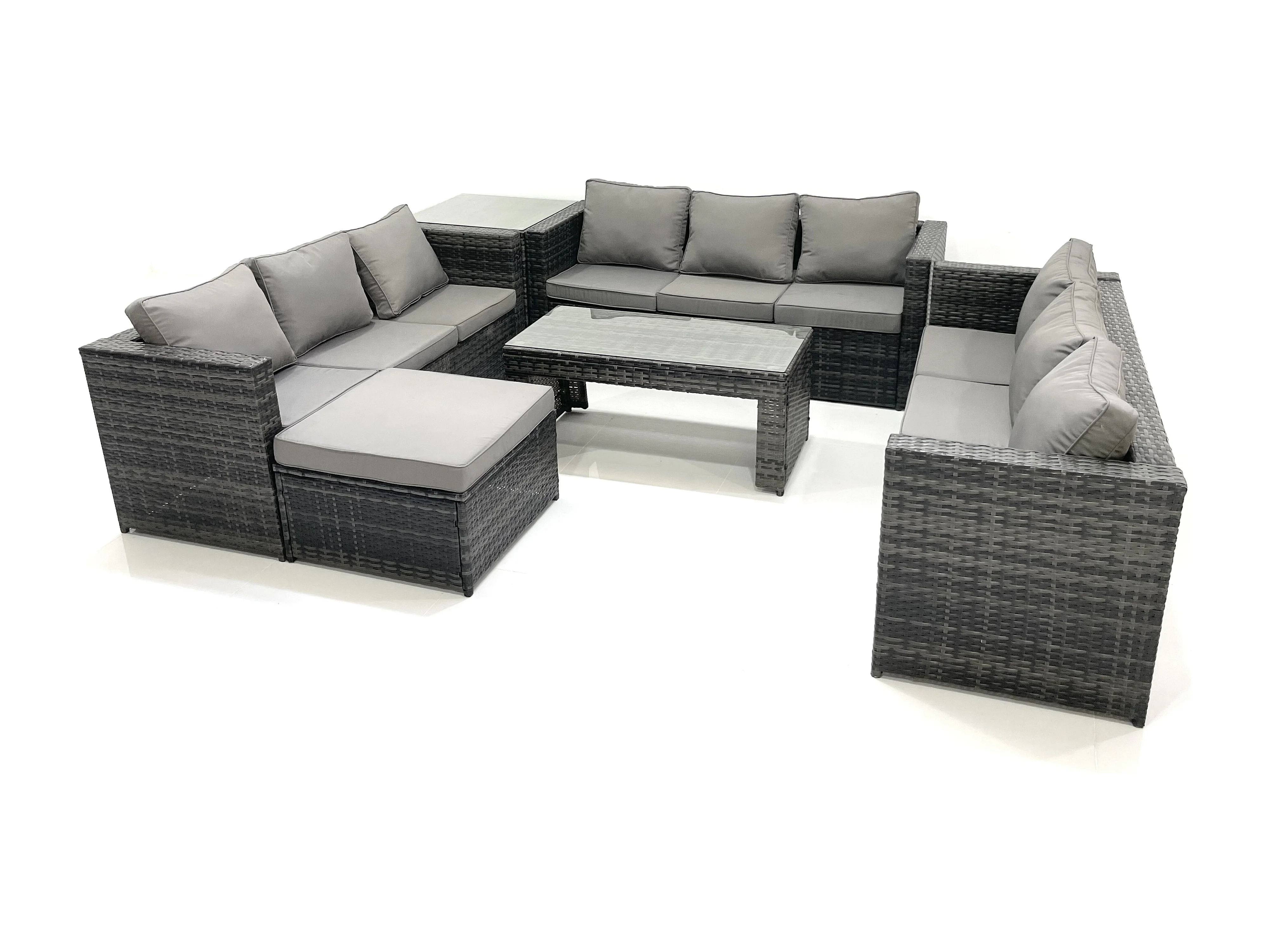 Ensemble de meubles de jardin en polyrotin 10 places avec Canapé Table basse Grand tabouret Table d'appoint Gris foncé mixte