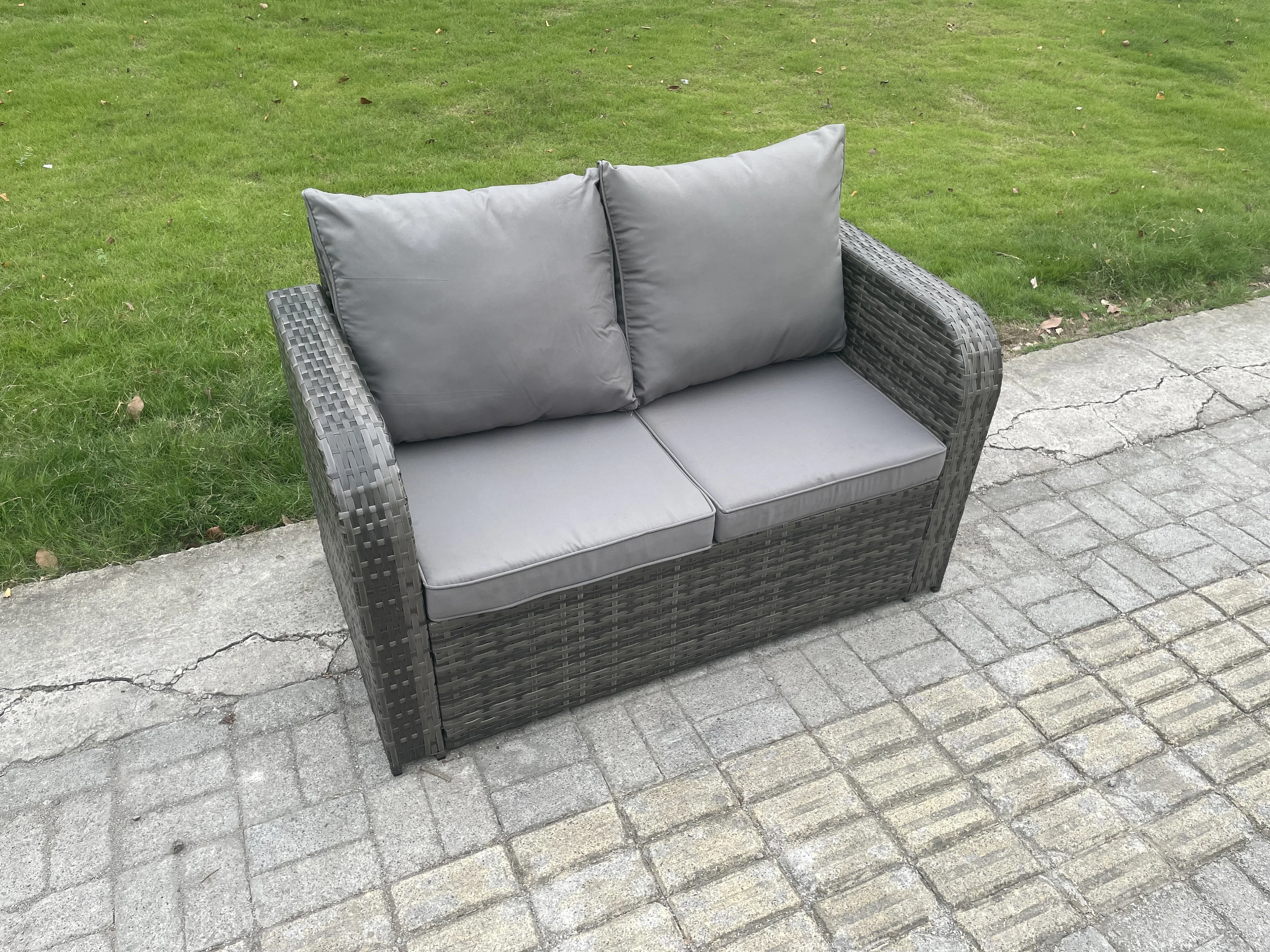 Ensemble de meubles de jardin en polyrotin avec Table basse rectangulaire Canapé d'amour 2 Tables d'appoint Gris foncé mixte