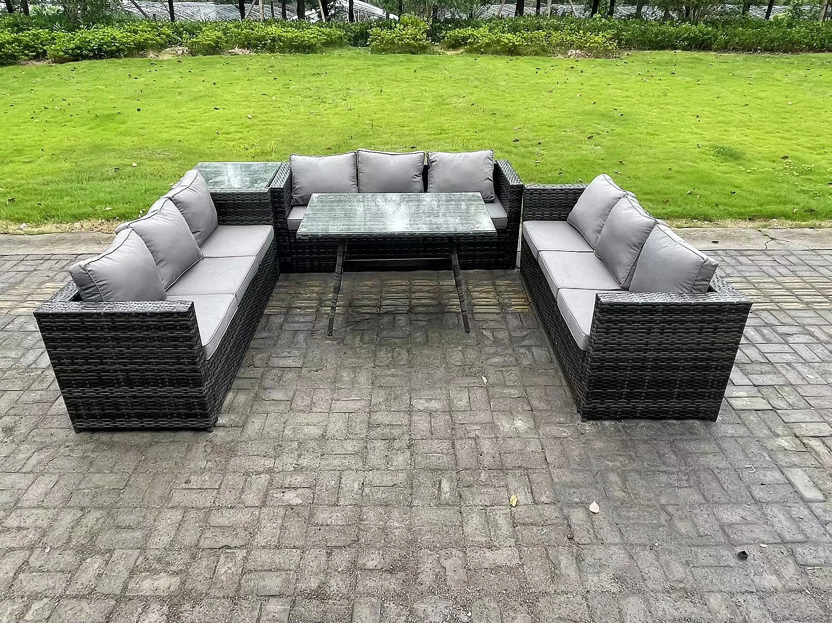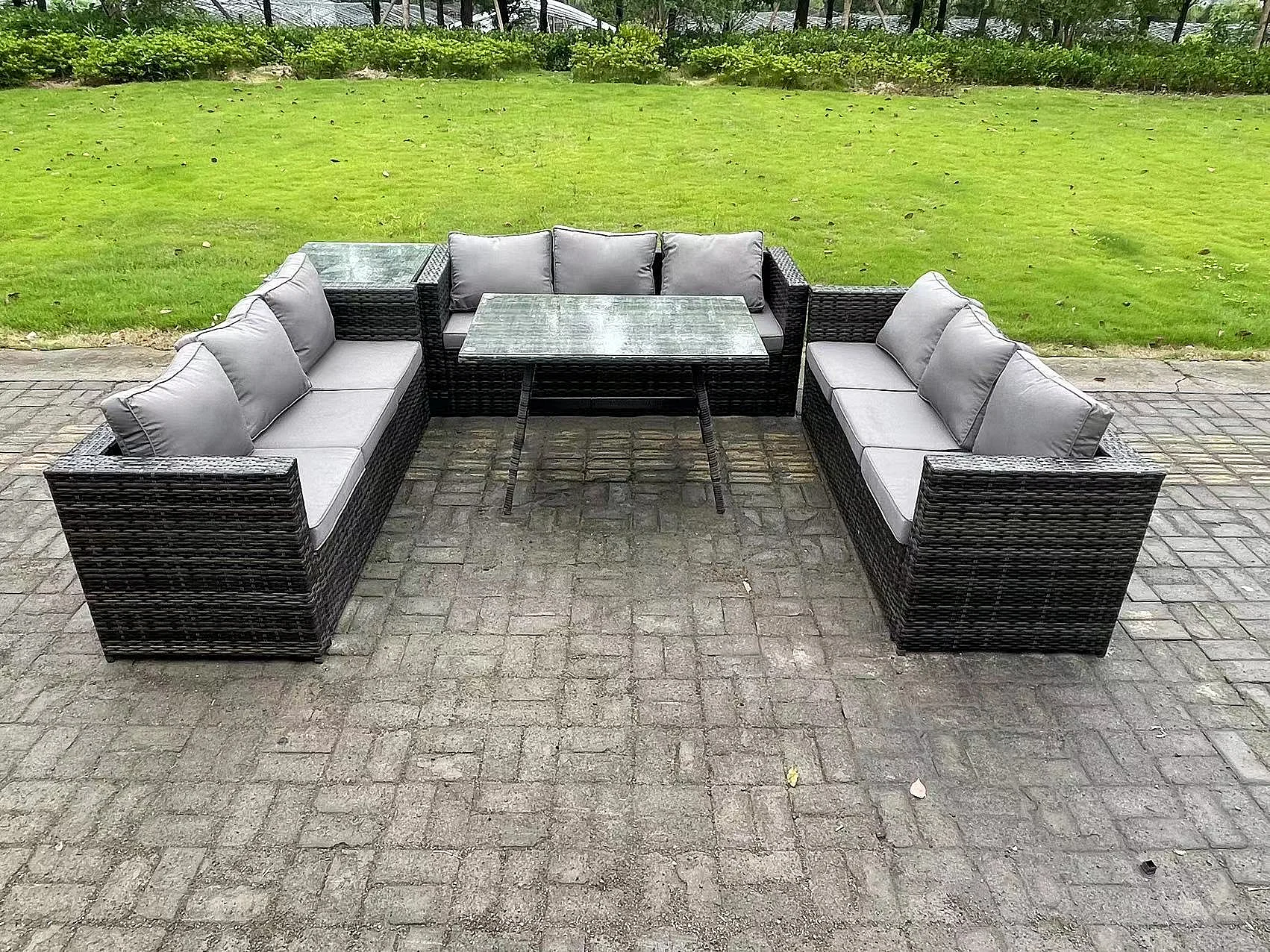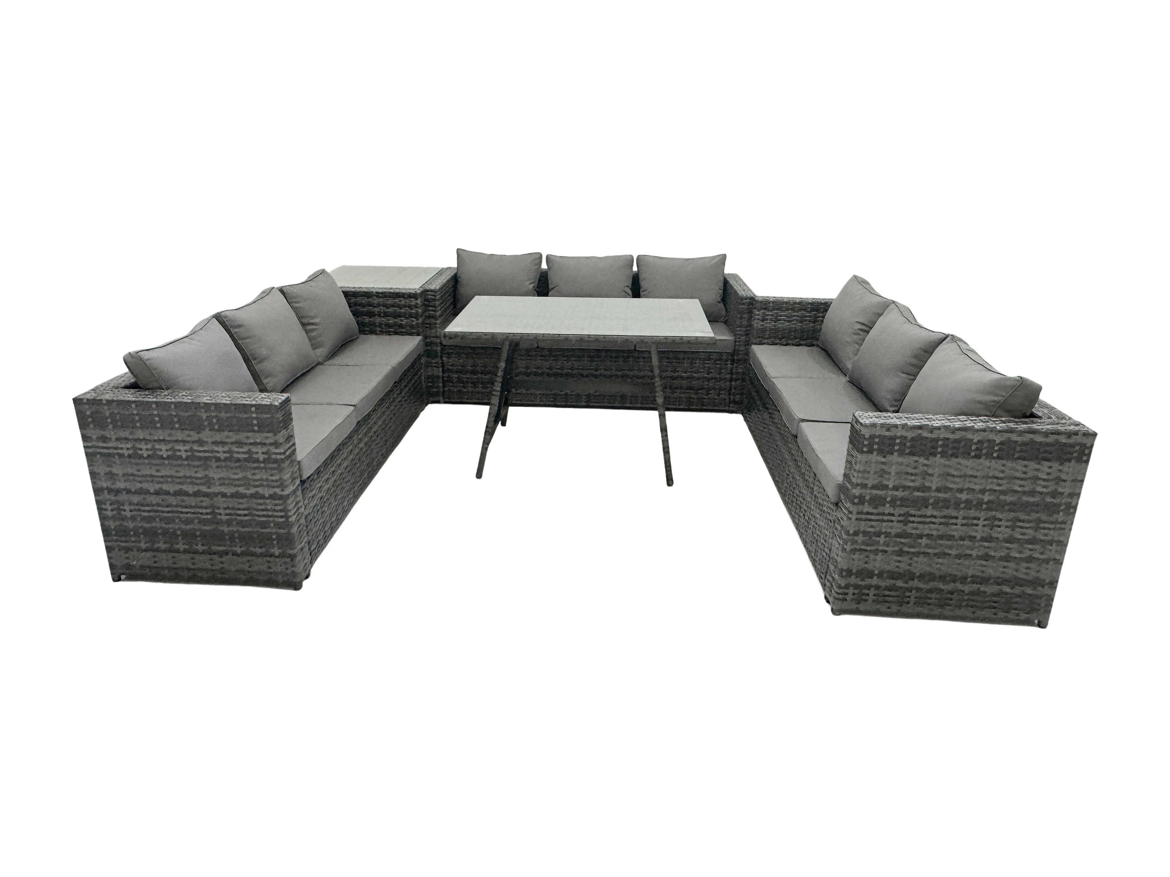Ensemble de meubles de jardin en polyrotin Garden avec Table à manger Patio Table d'appoint 9 places Gris foncé mixte