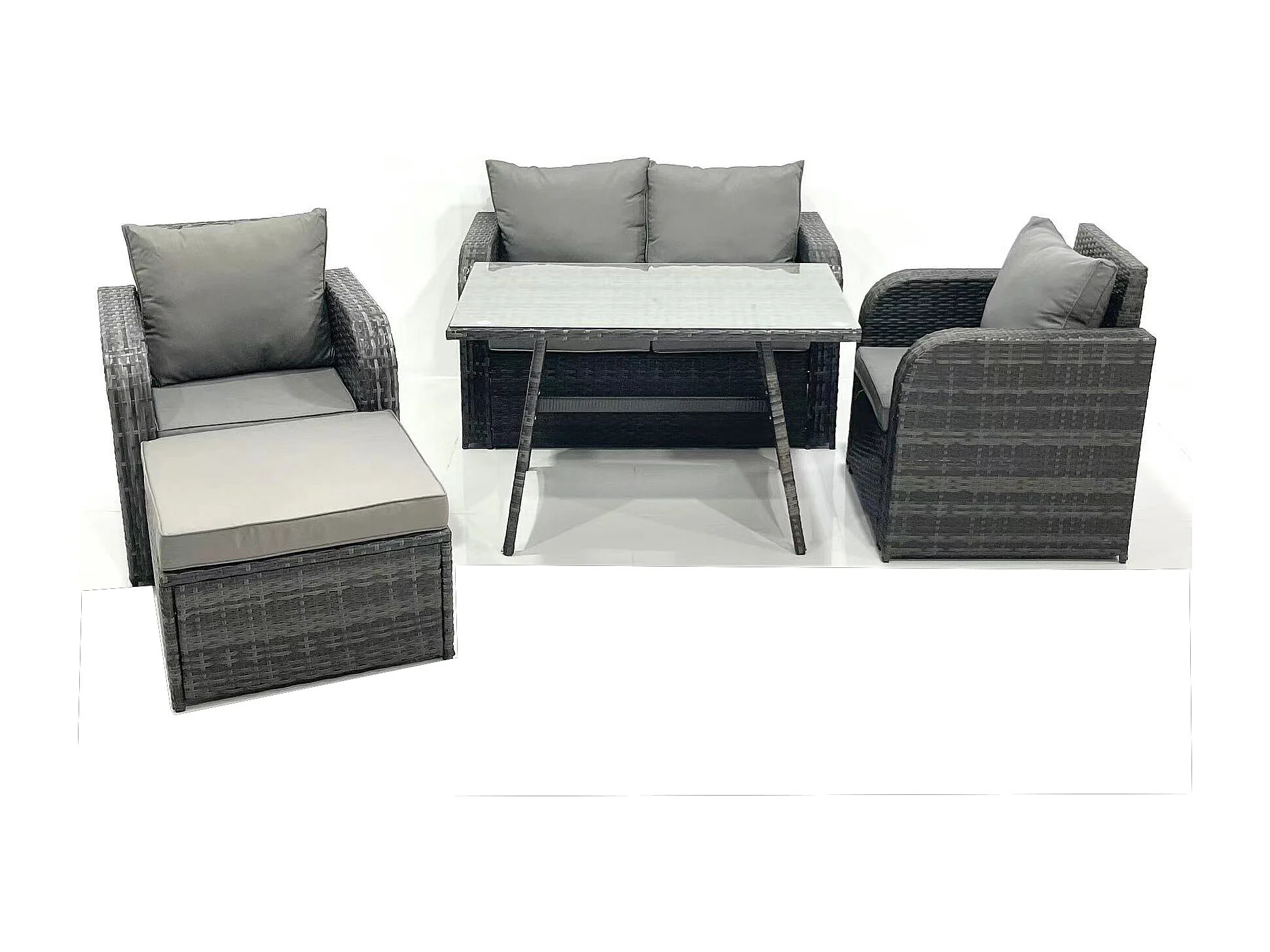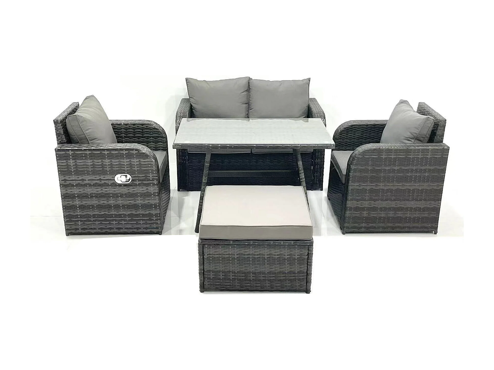 Ensemble de meubles de jardin en polyrotin Rattan Canapé avec Table à manger Chaise inclinable Grand tabouret Gris foncé mixte