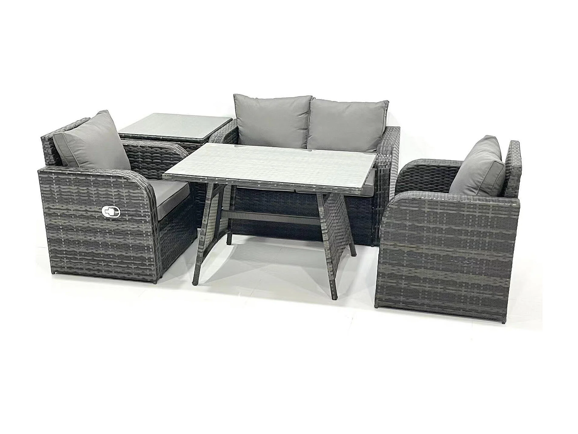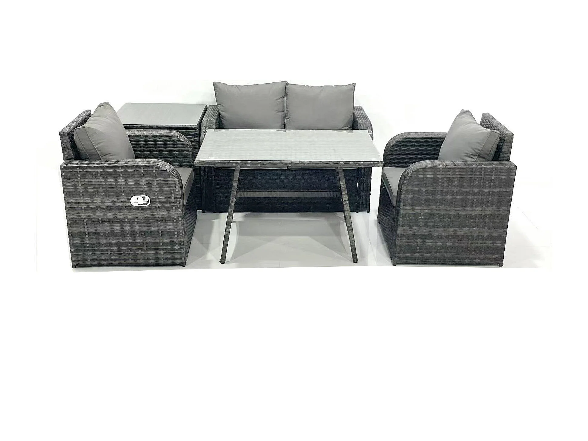 Ensemble de meubles de jardin en polyrotin Rattan Canapé avec Table à manger Chaise inclinable Table d'appoint Gris foncé mixte