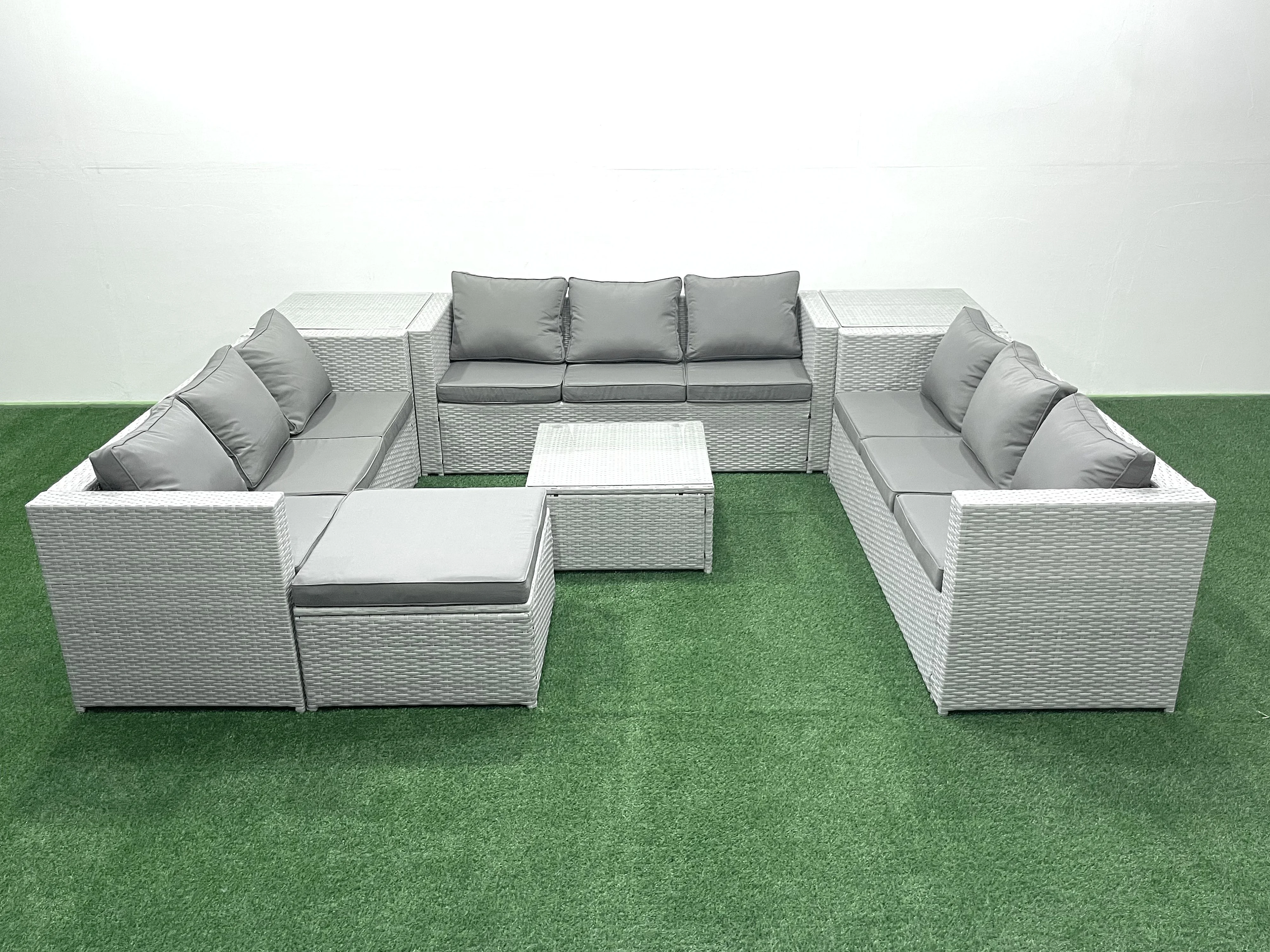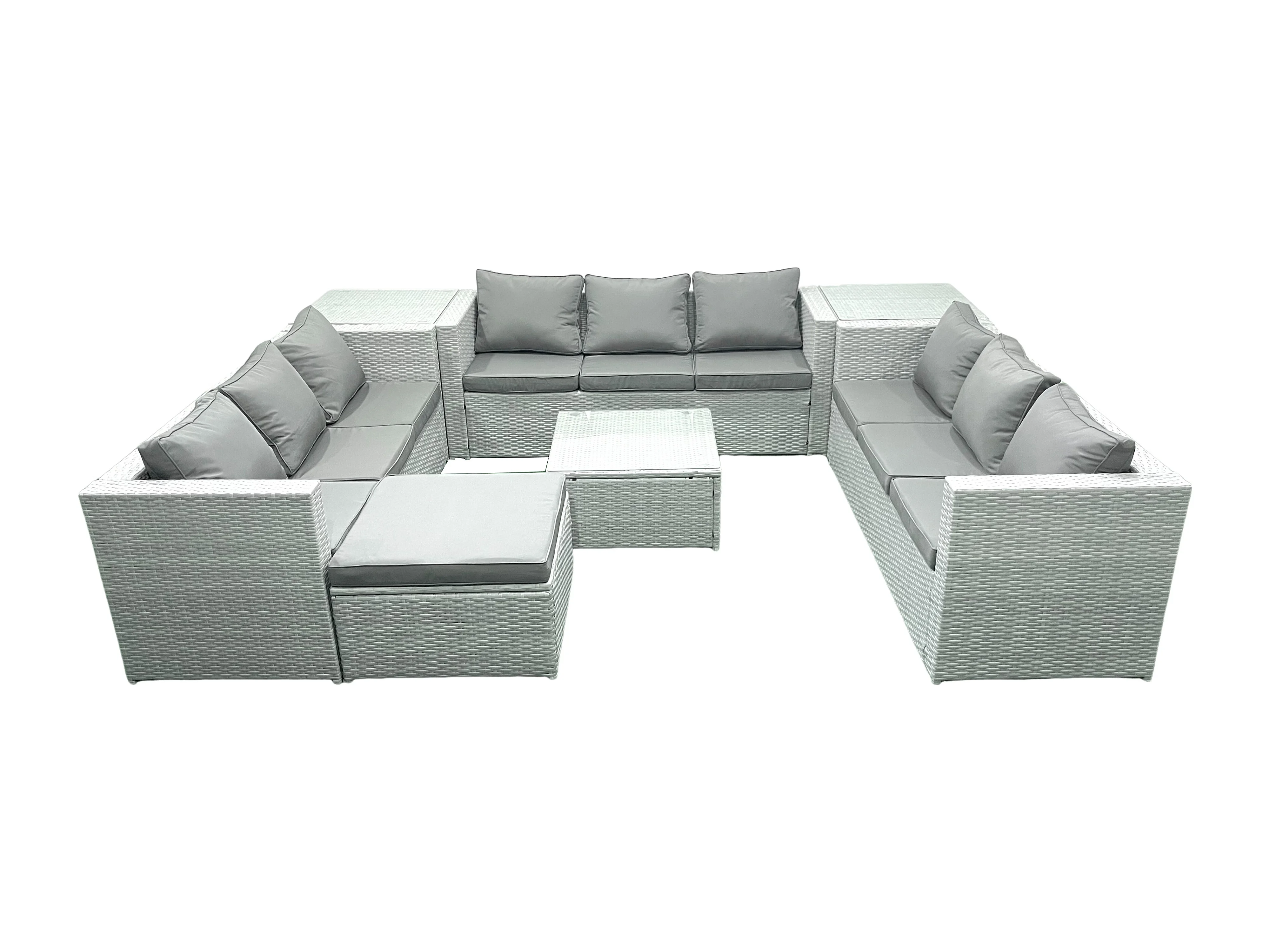 Ensemble de meubles de jardin en rotin 10 places avec Canapé Grand tabouret 2 Tables d'appoint Gris clair mixte
