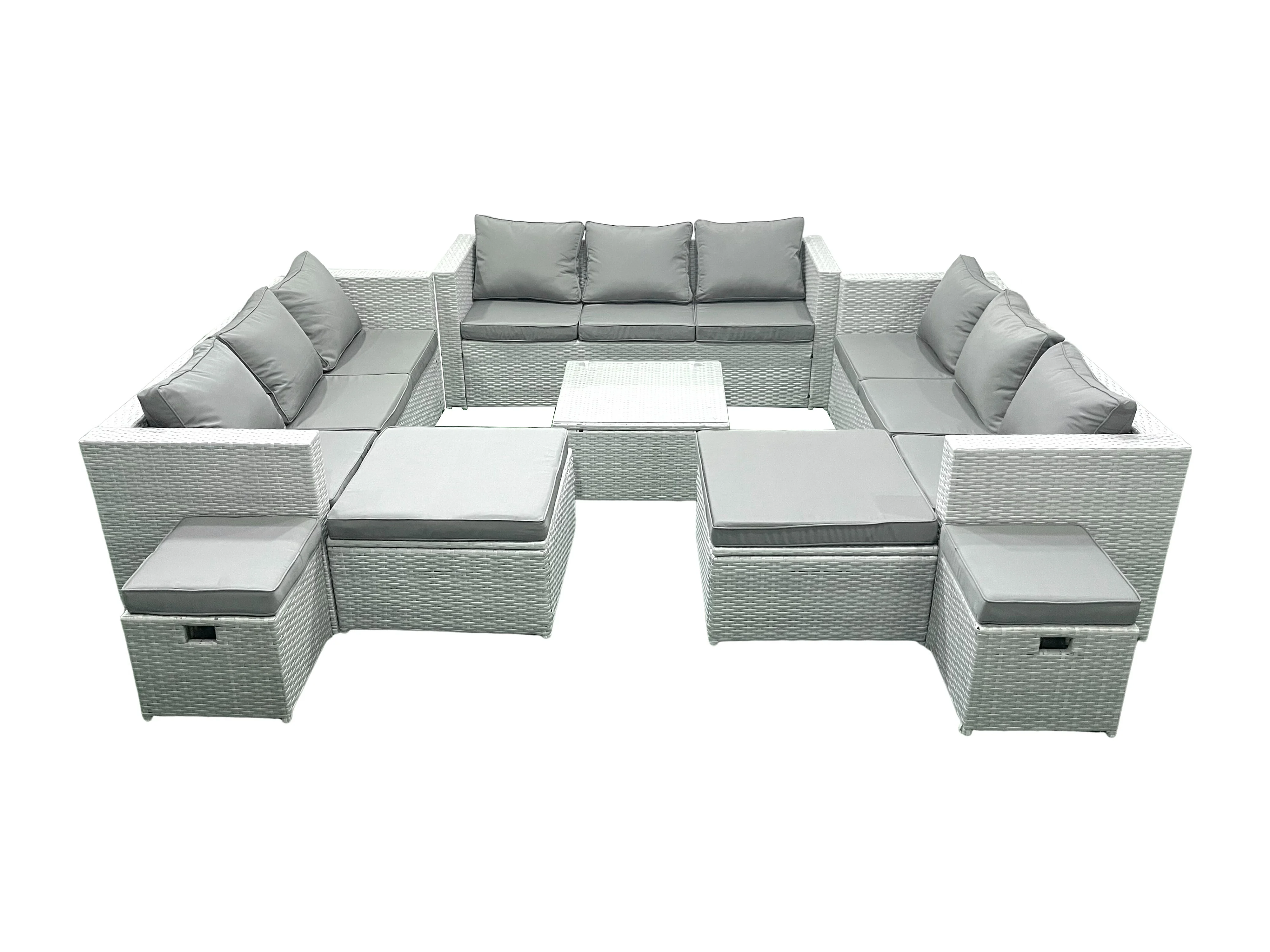Ensemble de meubles de jardin en rotin 13 places avec Canapé 4 Tabourets Gris clair mixte