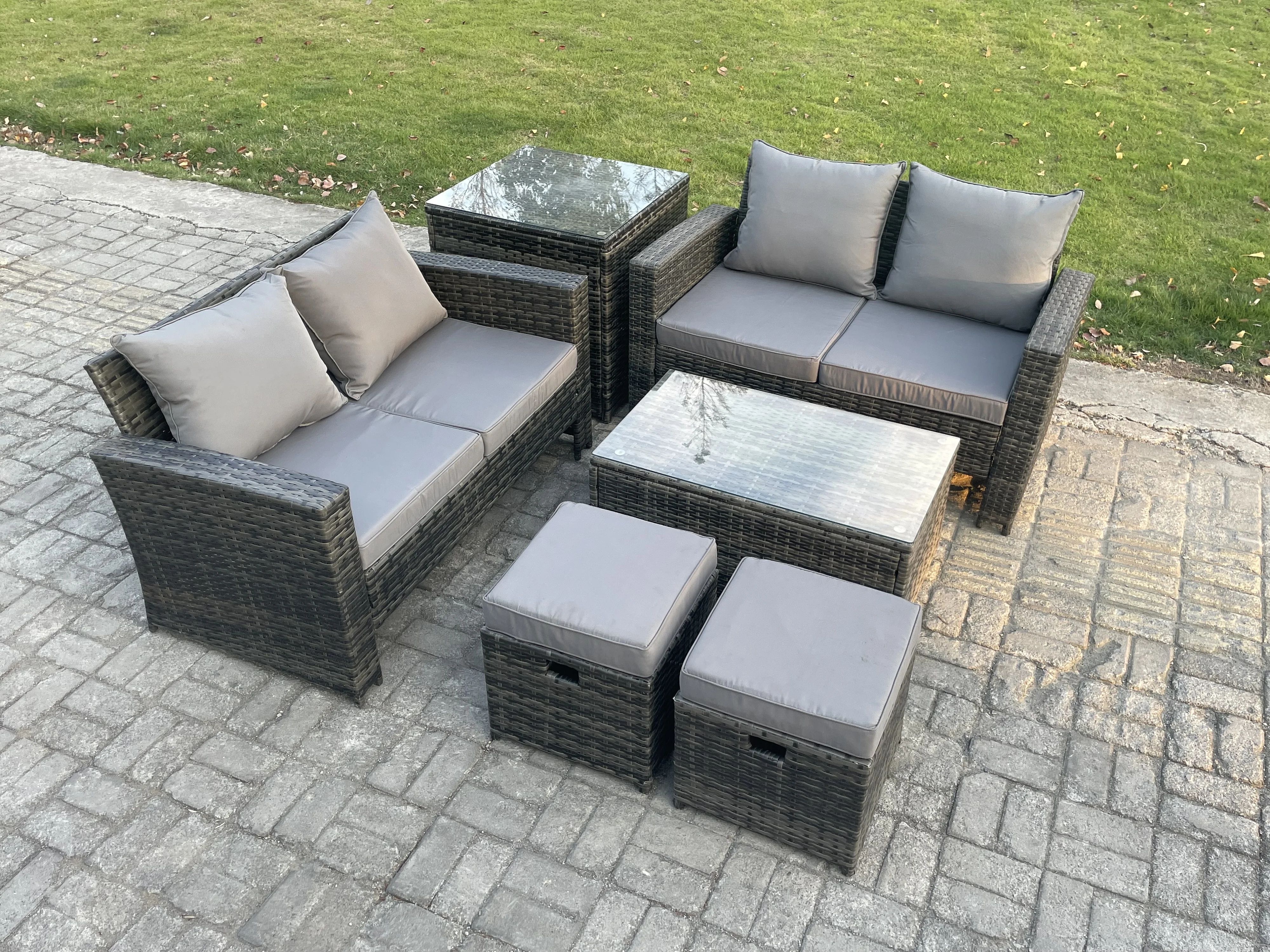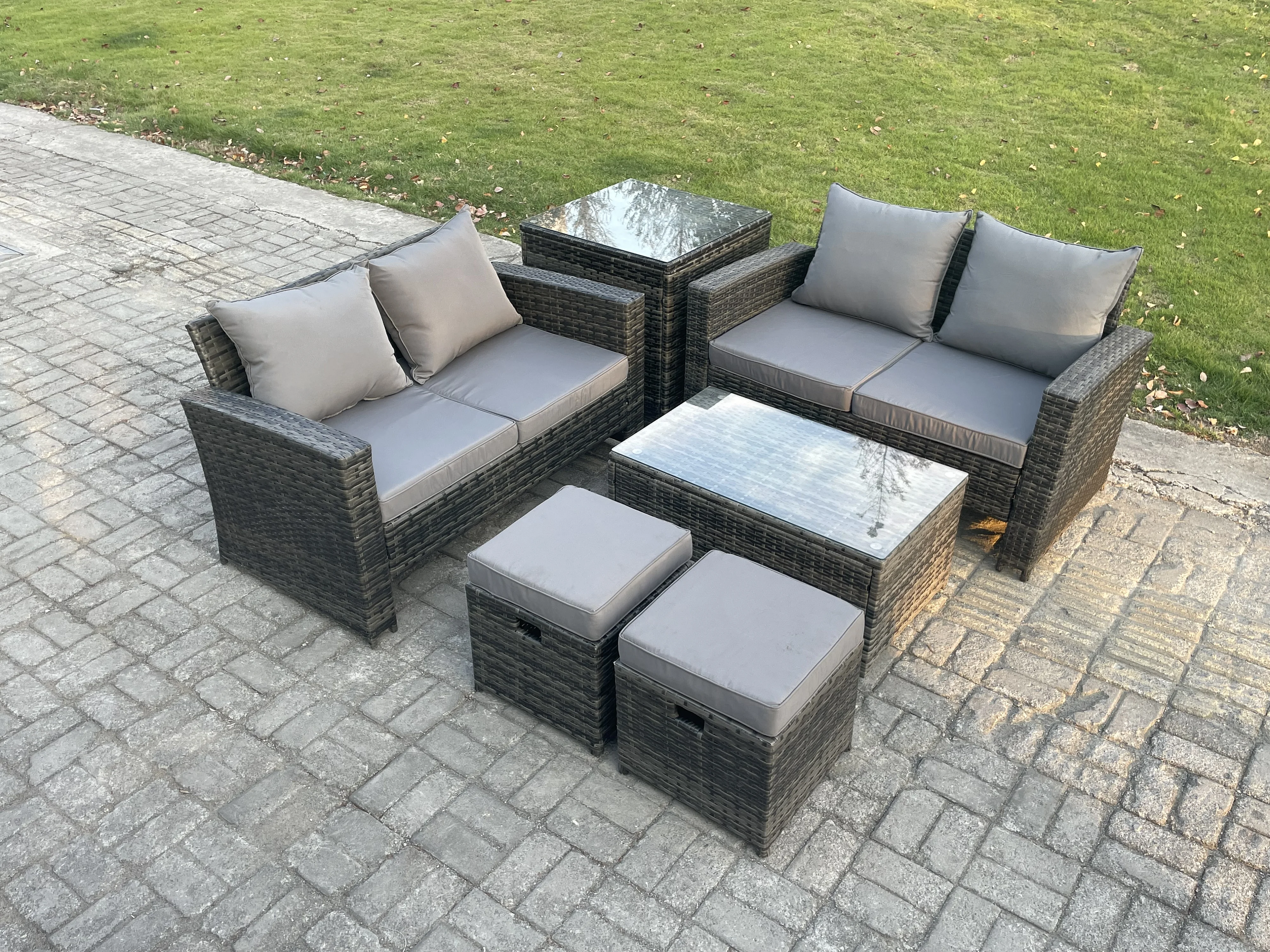 Ensemble de meubles de jardin en rotin ave Table basse rectangulaire Canapé deux places 6 Places