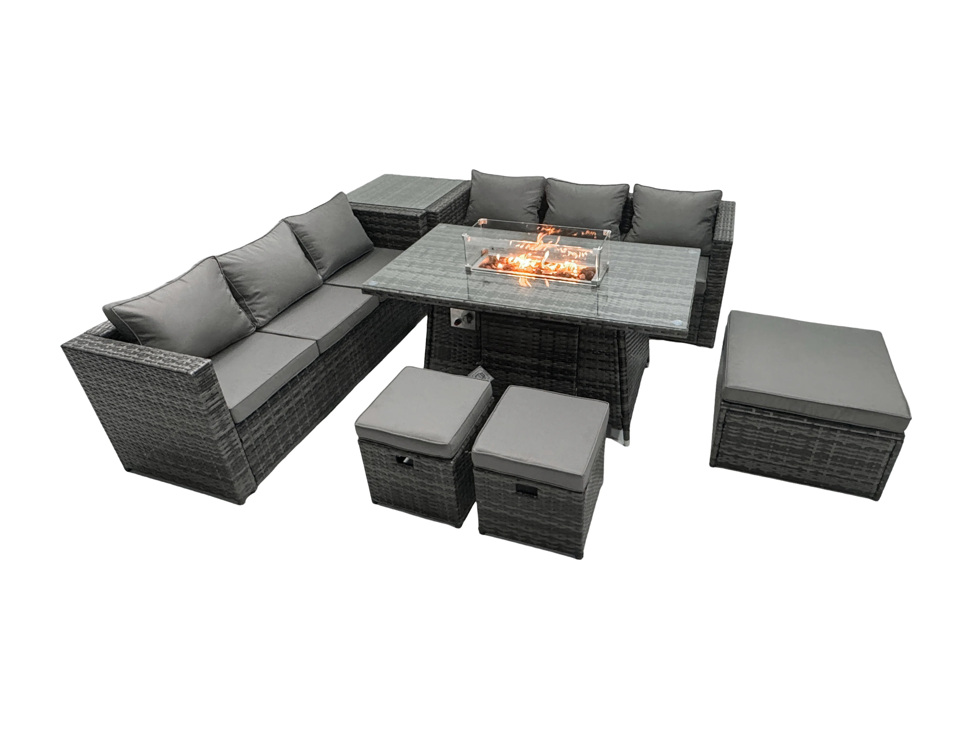 Ensemble de meubles de jardin en rotin ave Table de foyer à gaz 6 places Ensemble de canapés avec Table d'appoint 3 Tabourets