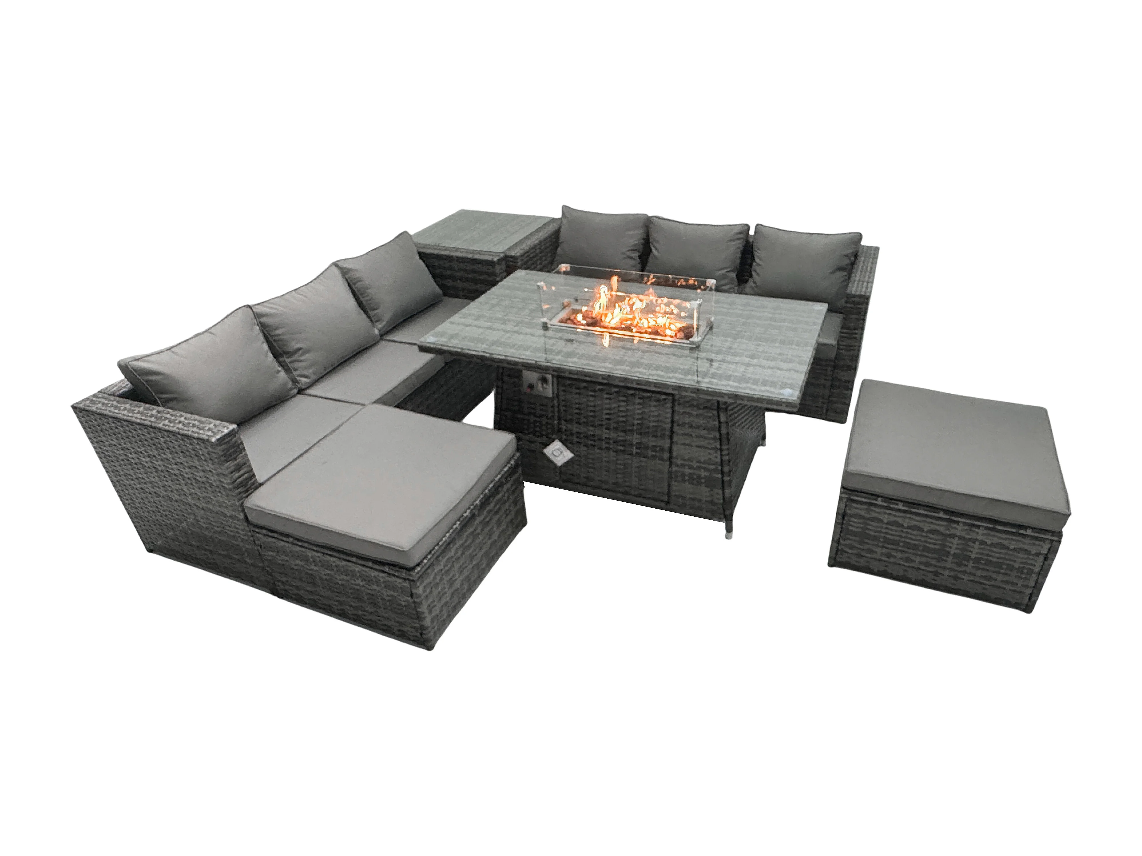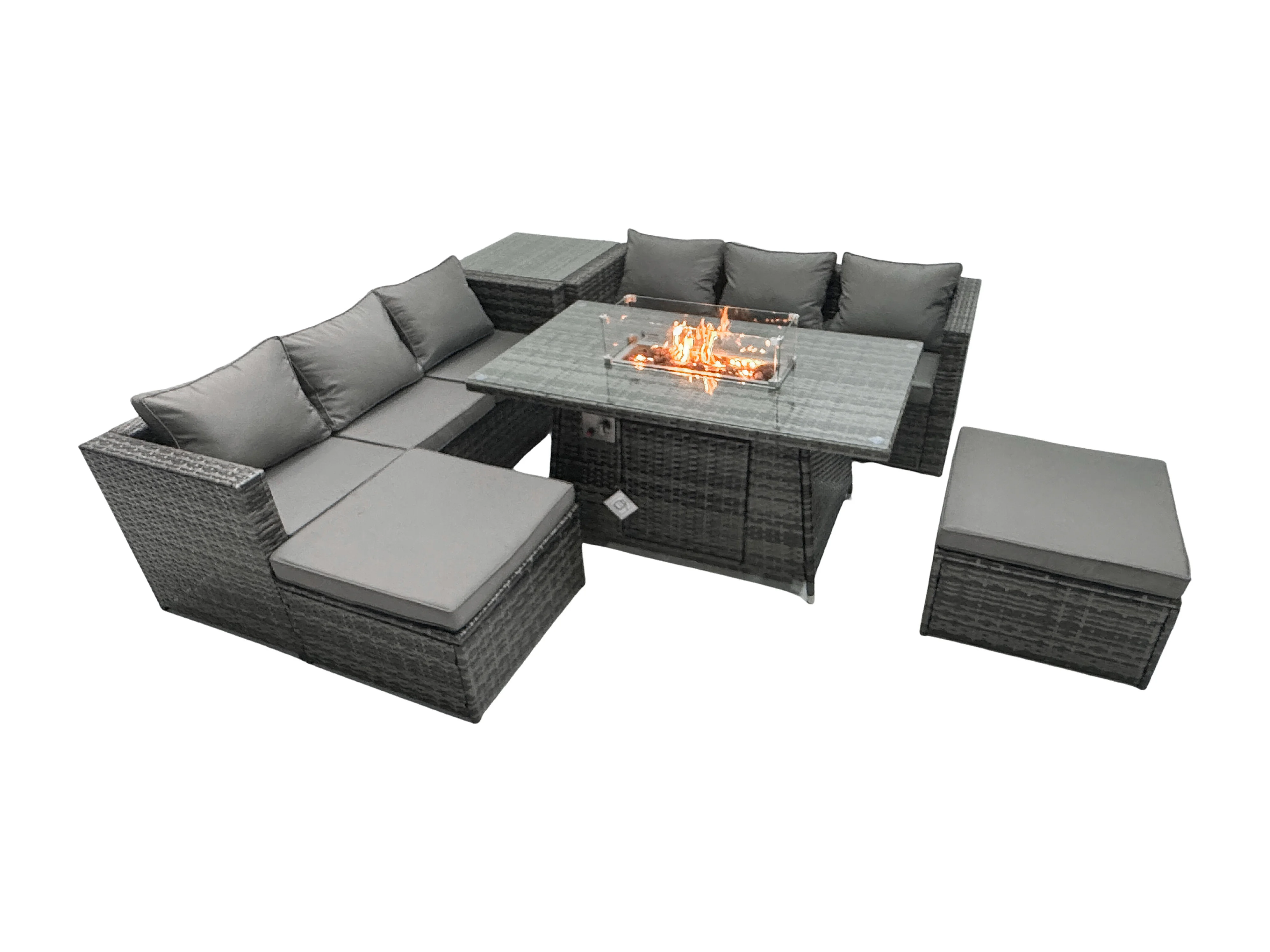 Ensemble de meubles de jardin en rotin ave Table de foyer à gaz 6 places Ensemble de canapés avec Tables d'appoint 2 Tabourets
