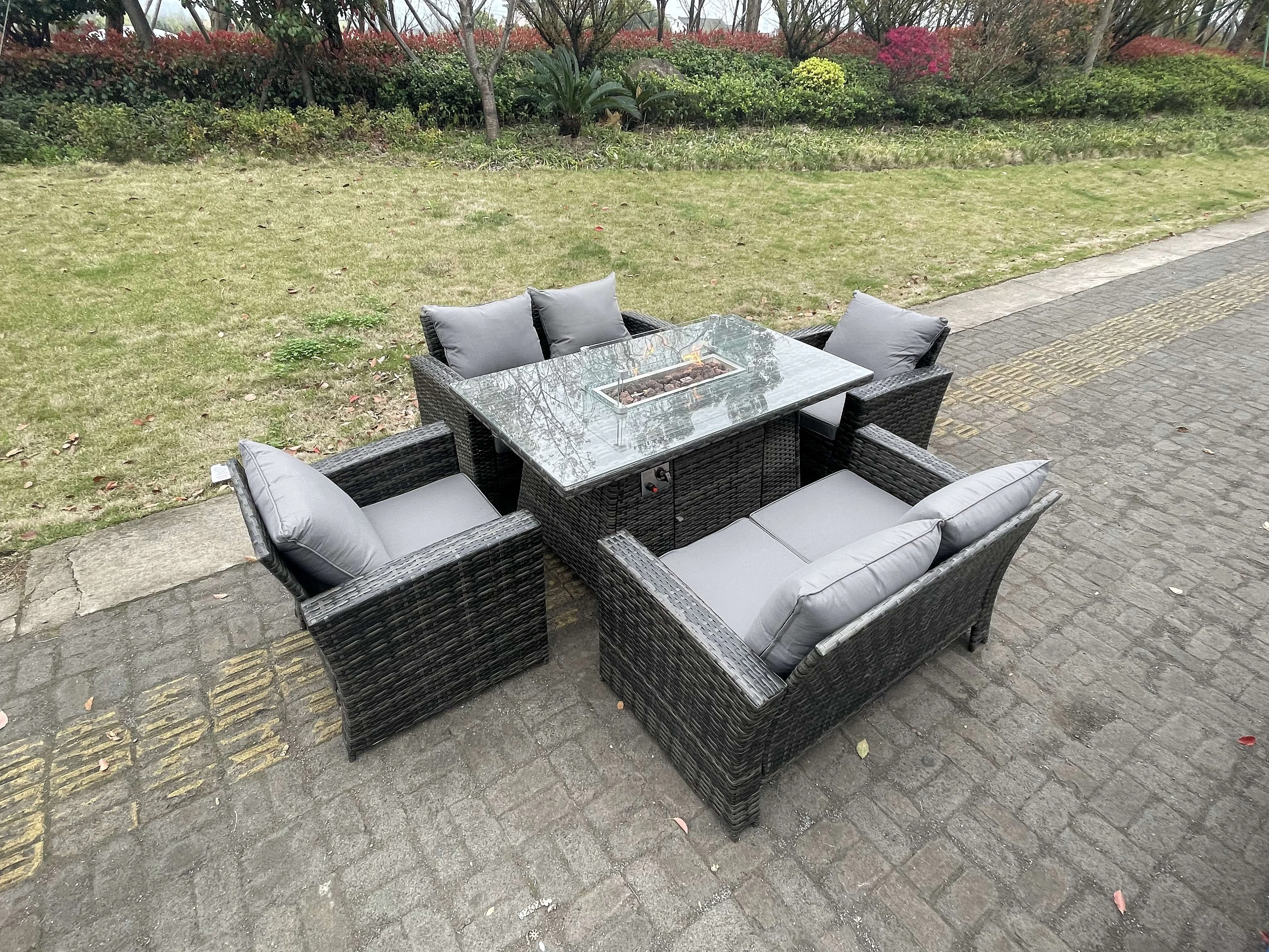 Ensemble de meubles de jardin en rotin ave Table de foyer à gaz Fauteuil Canapé d'amour 6 Places