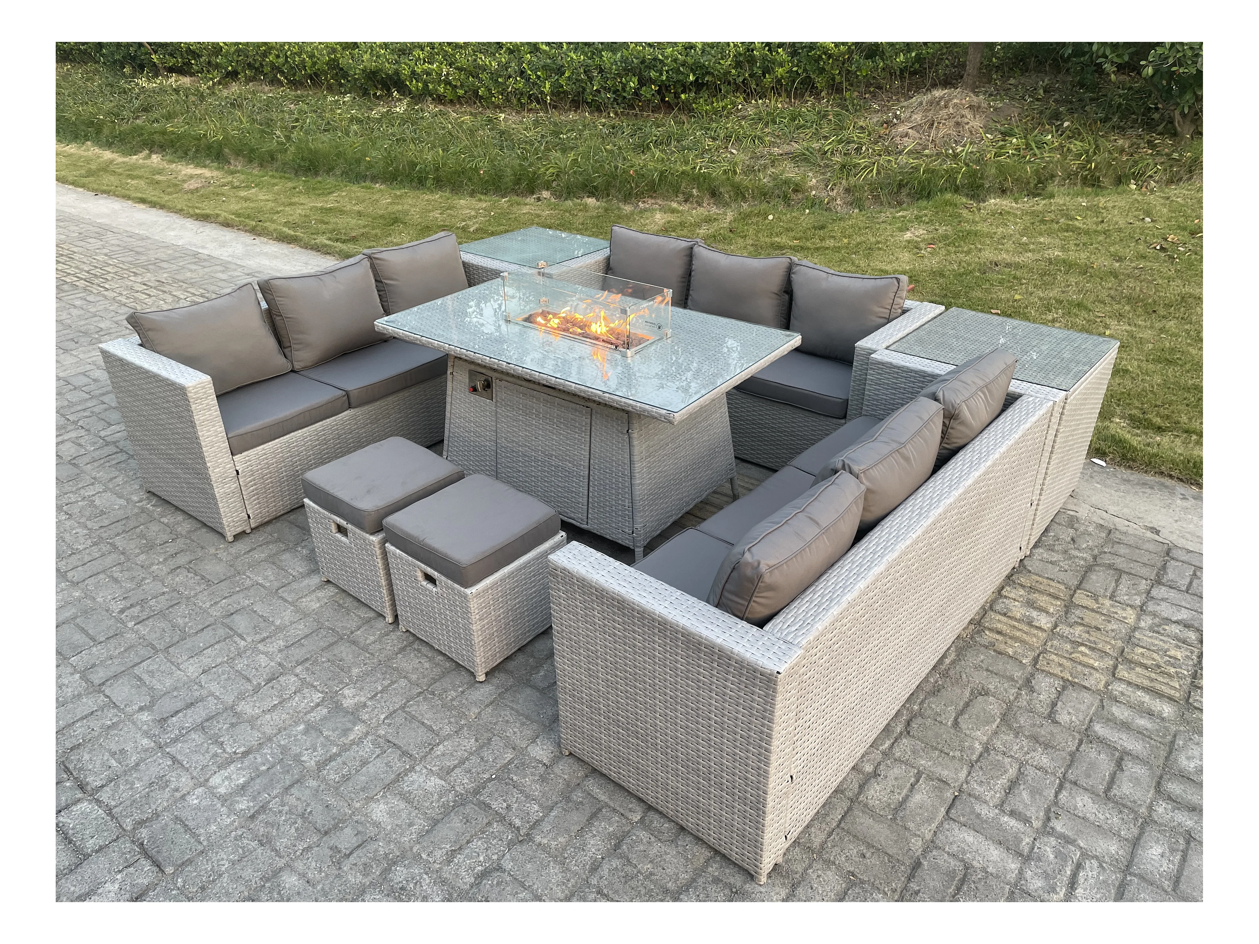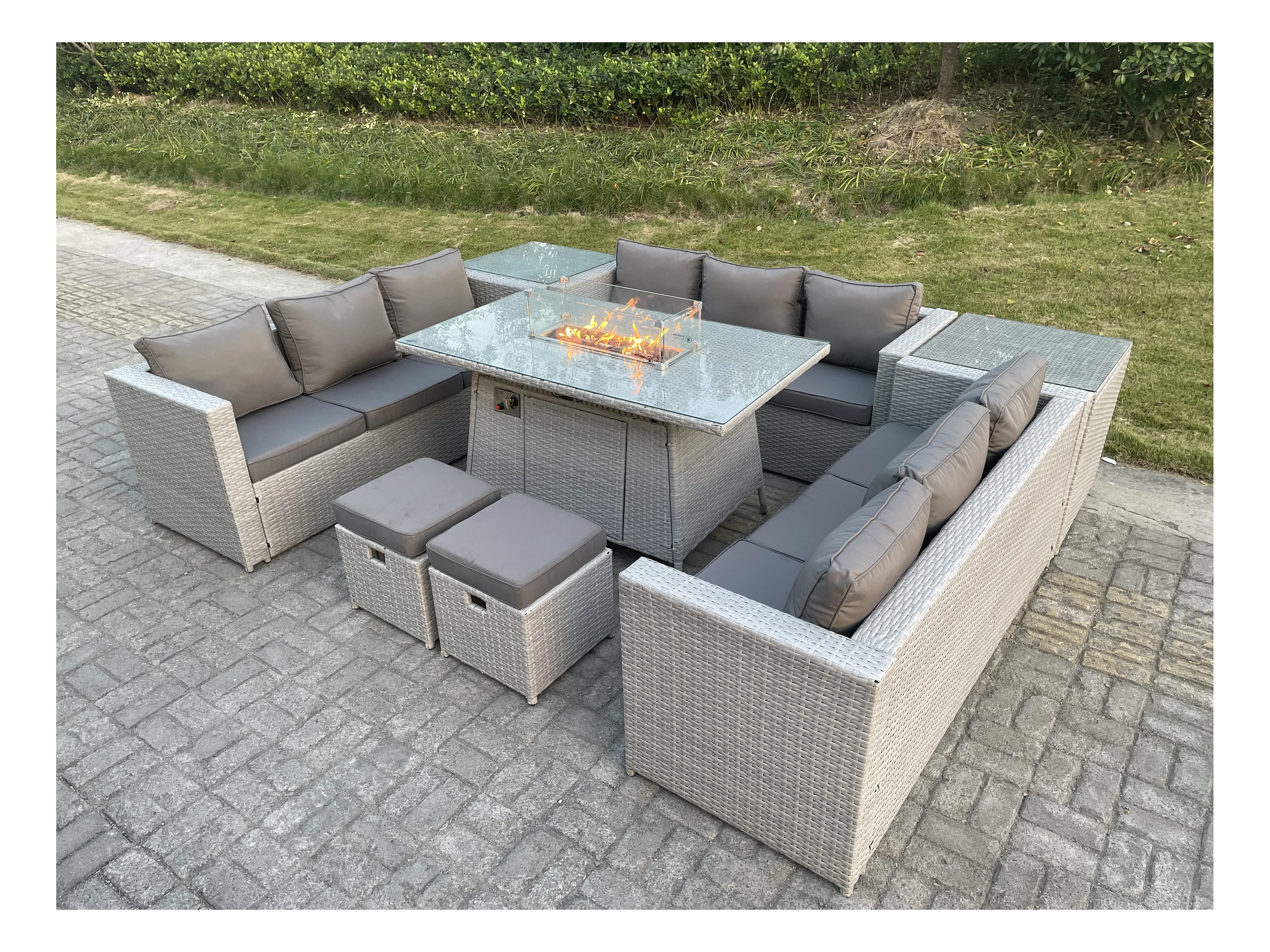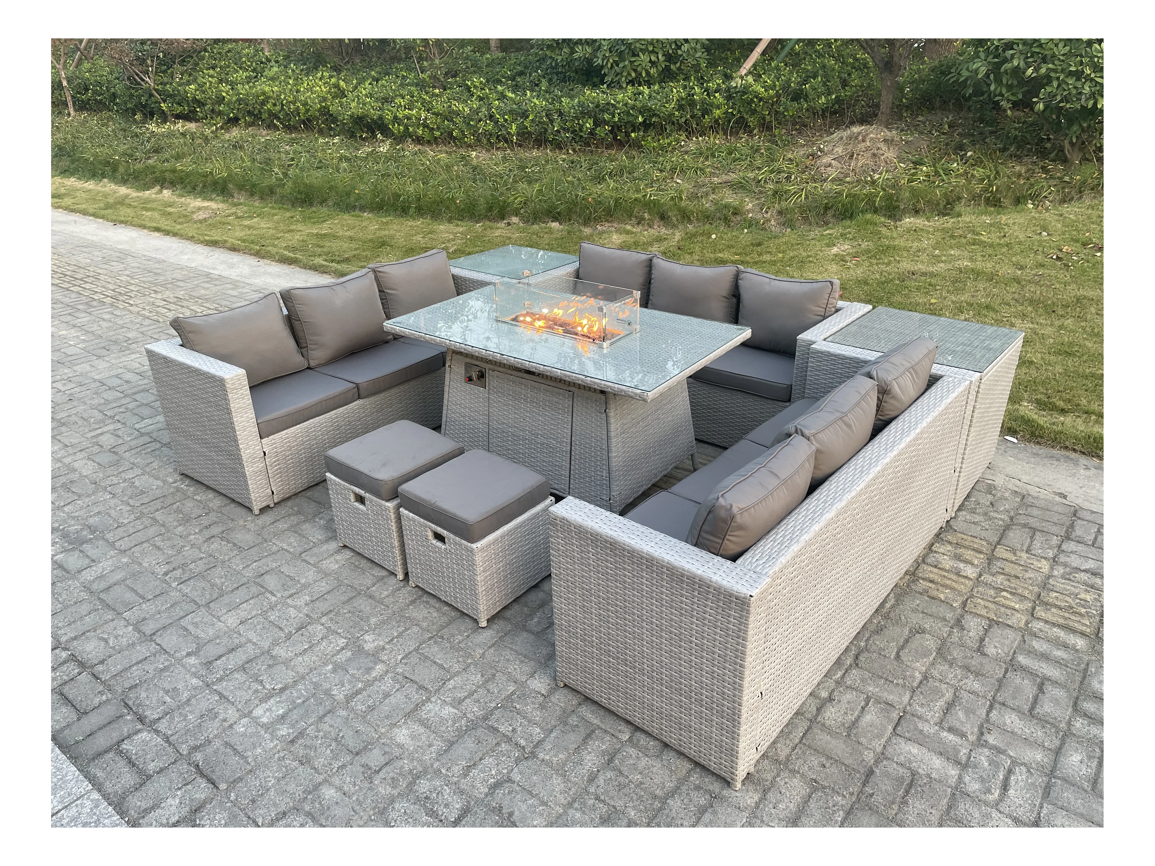 Ensemble de meubles de jardin en rotin ensemble Table de foyer à gaz canapé ave 2 Table d'appoint 2 Petit Tabourets Gris Clair