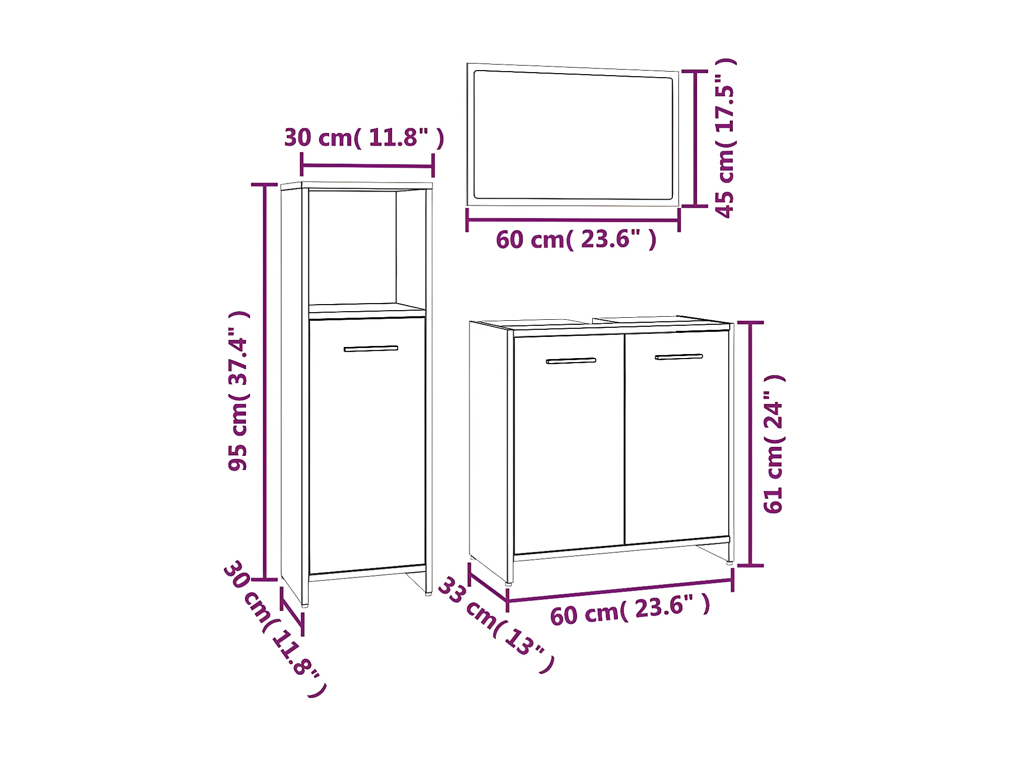 Ensemble de meubles de salle de bain 3 pcs Chêne fumé