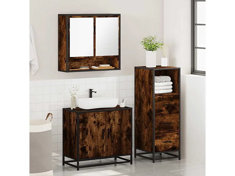 Ensemble de meubles de salle de bain 3 pcs Chêne fumé