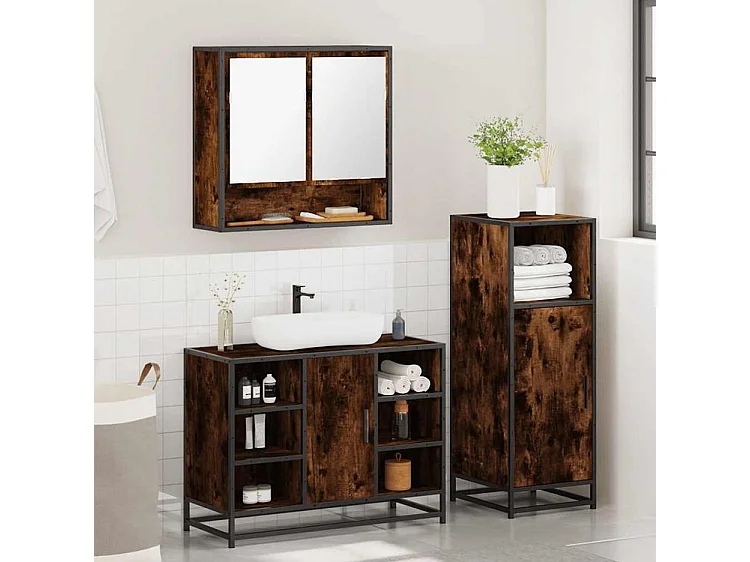 Ensemble de meubles de salle de bain 3 pcs Chêne fumé
