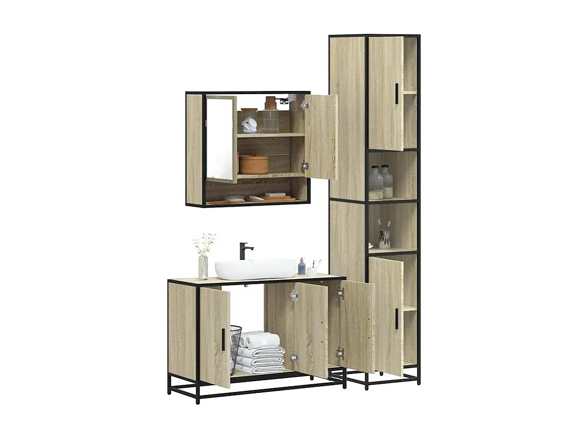 Ensemble de meubles de salle de bain 3 pcs chêne sonoma