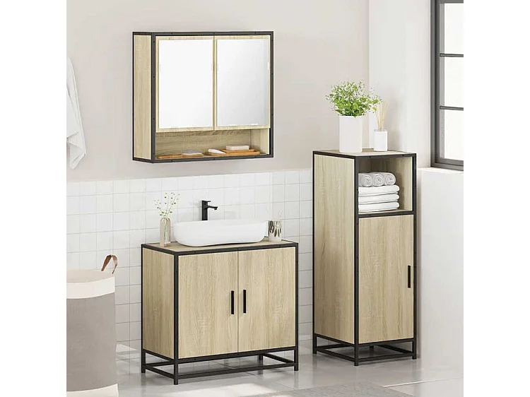 Ensemble de meubles de salle de bain 3 pcs chêne sonoma